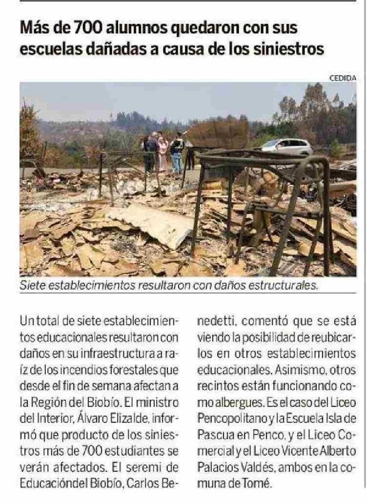 | Título: | Más de 700 alumnos quedaron con sus escuelas dañadas a causa de los siniestros |
