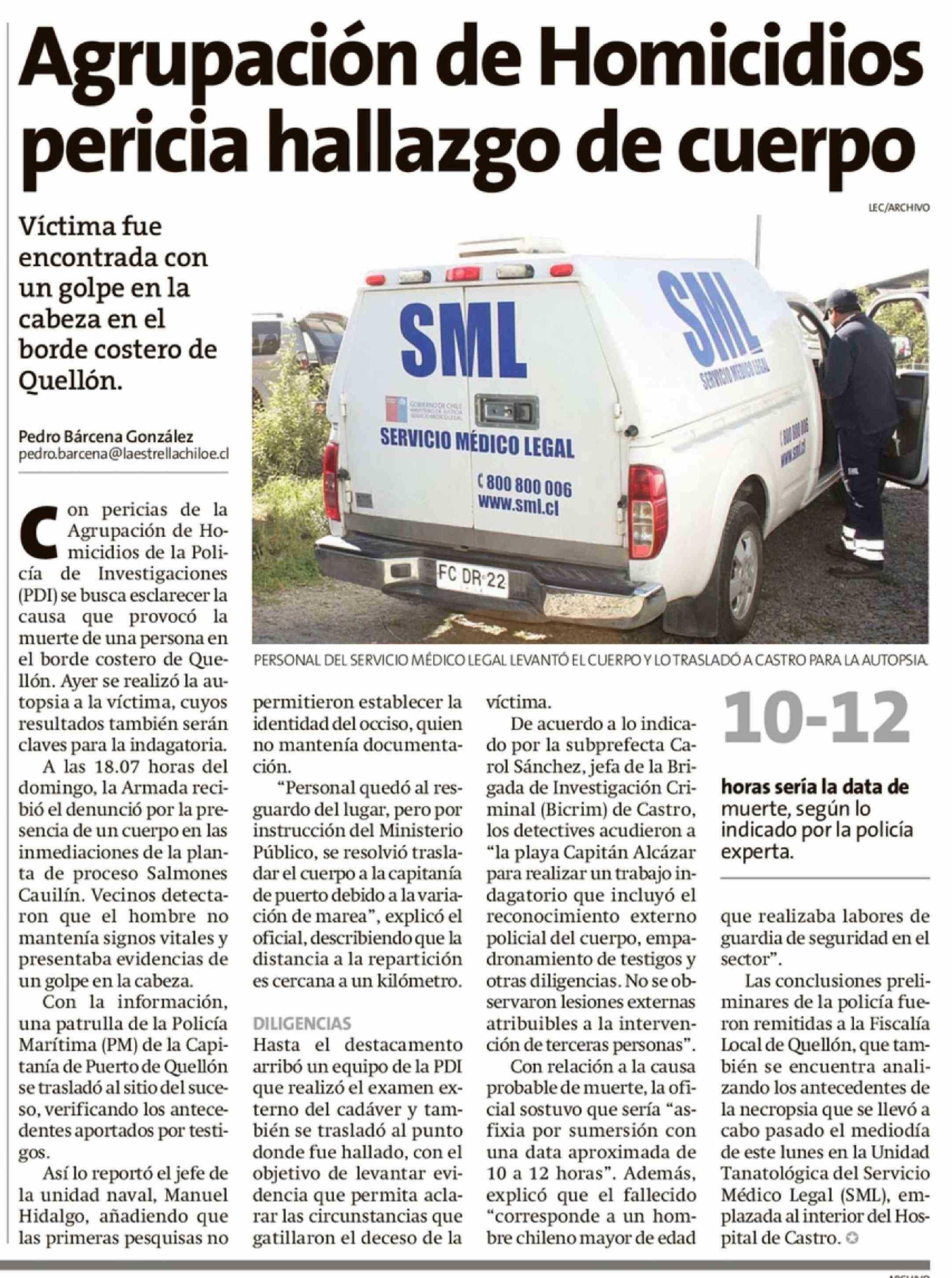 Agrupación de Homicidios pericia hallazgo de cuerpo 31-03-2026 La Estrella de Chiloé |