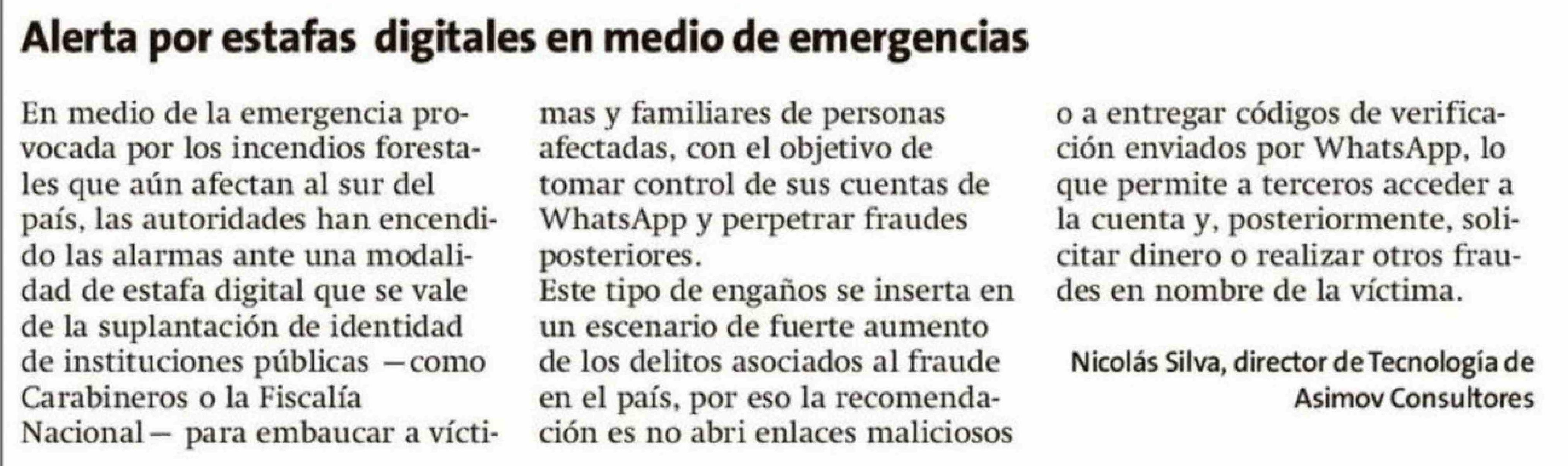Título: Columnas de Opinión: Alerta por estafas digitales en medio de emergencias