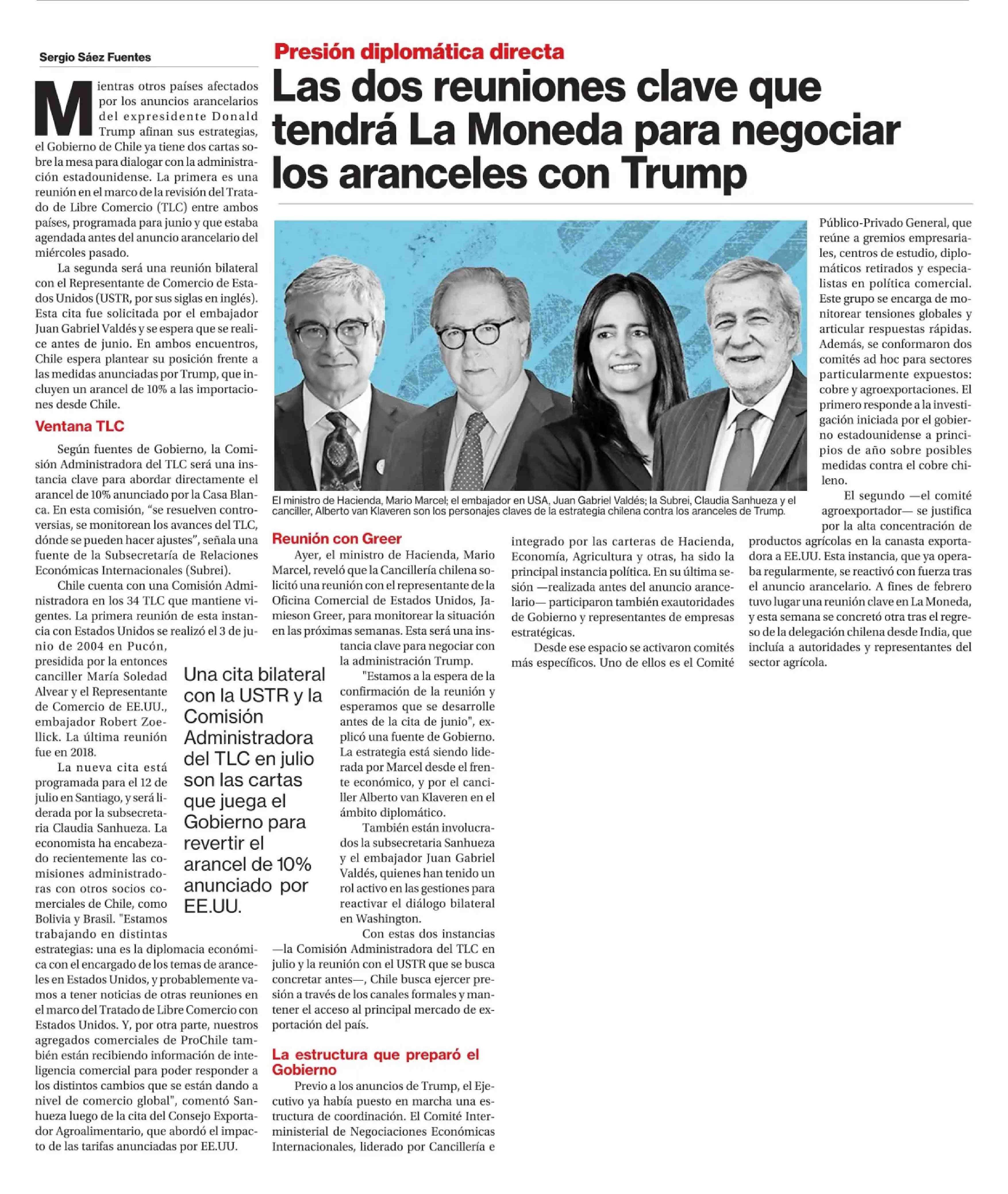 | Título: | Las dos reuniones clave que tendrá La Moneda para negociar los aranceles con Trump |