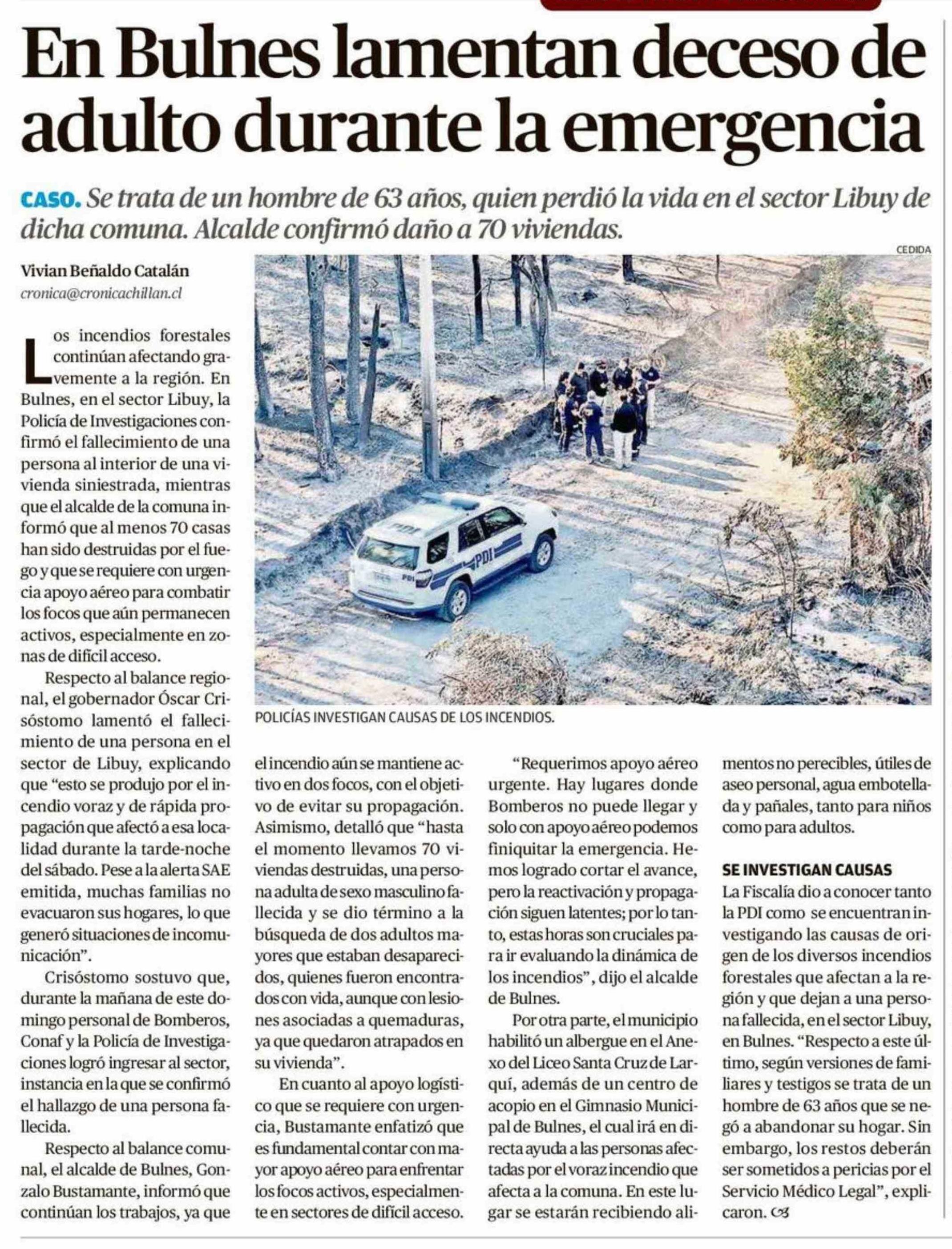 Título: En Bulnes lamentan deceso de adulto durante la emergencia