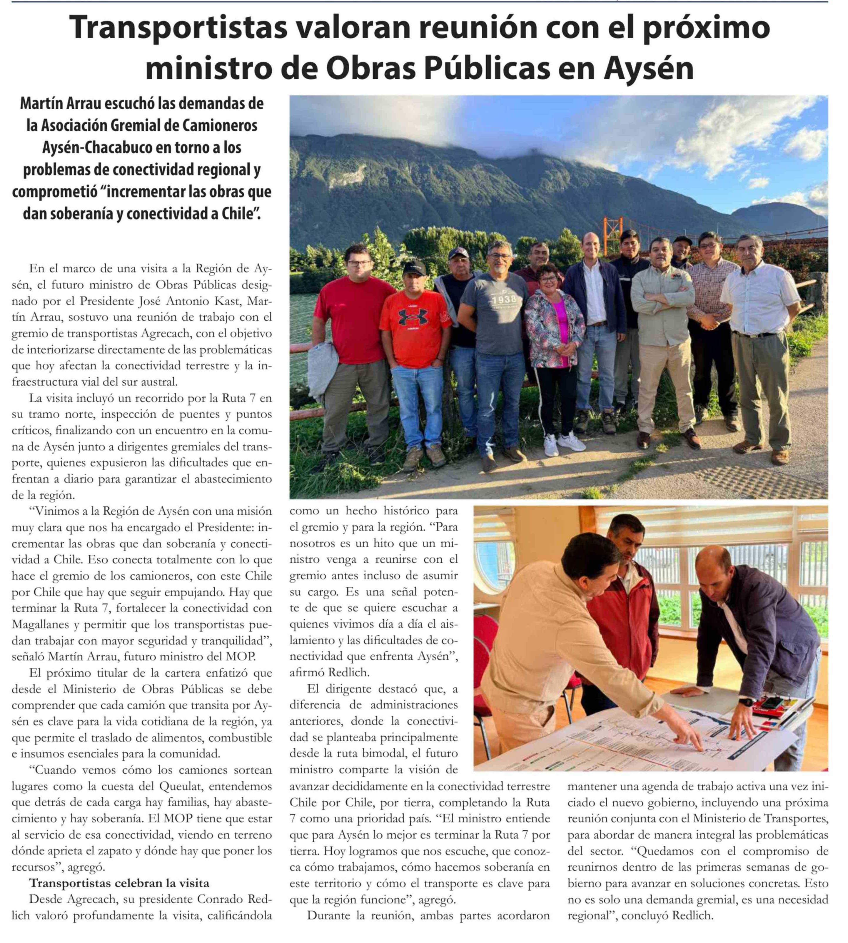 Título: Transportistas valoran reunión con el próximo ministro de Obras Públicas en Aysén