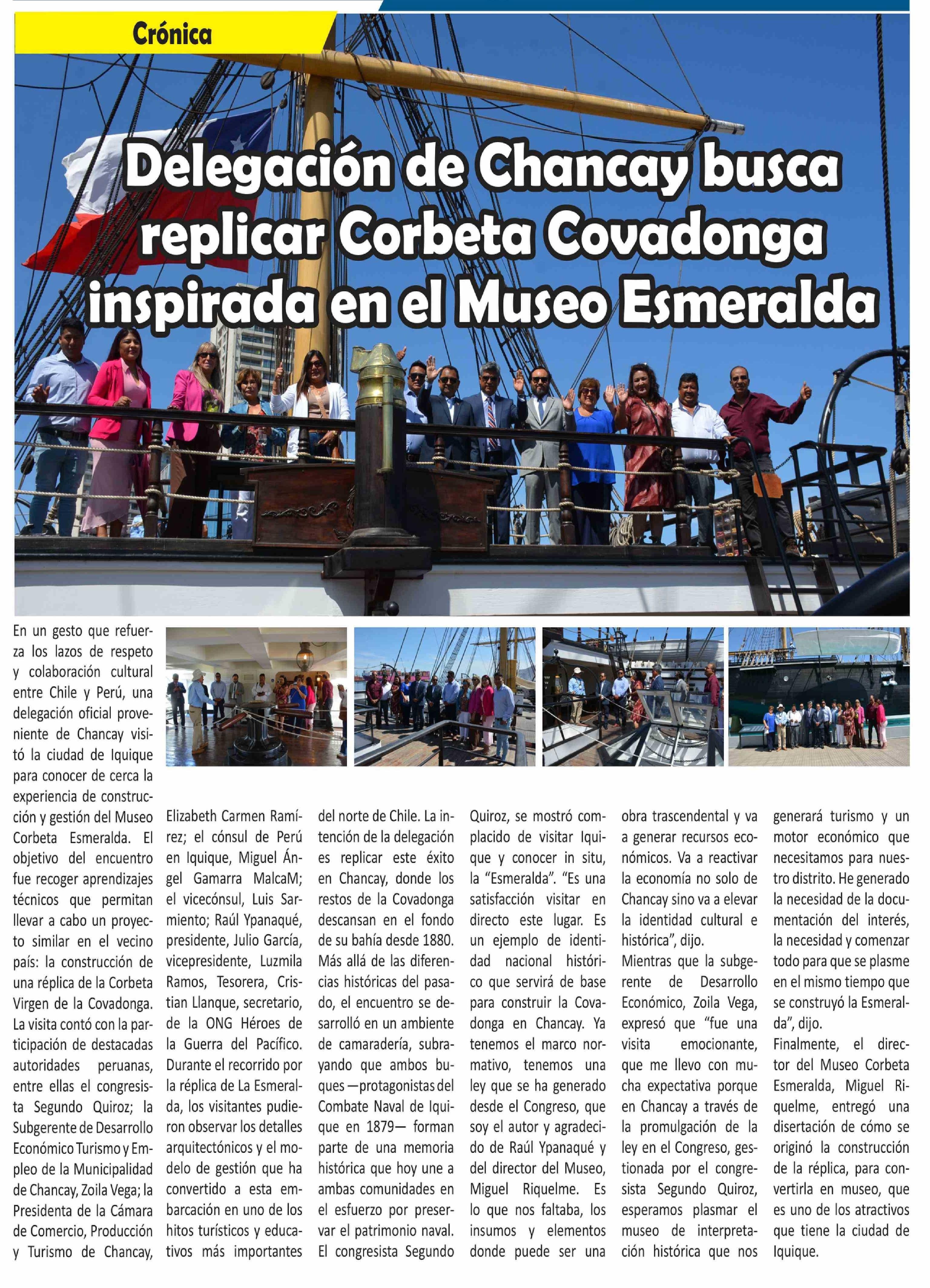 Título: Delegación de Chancay busca replicar Corbeta Covadonga inspirada en el Museo Esmeralda