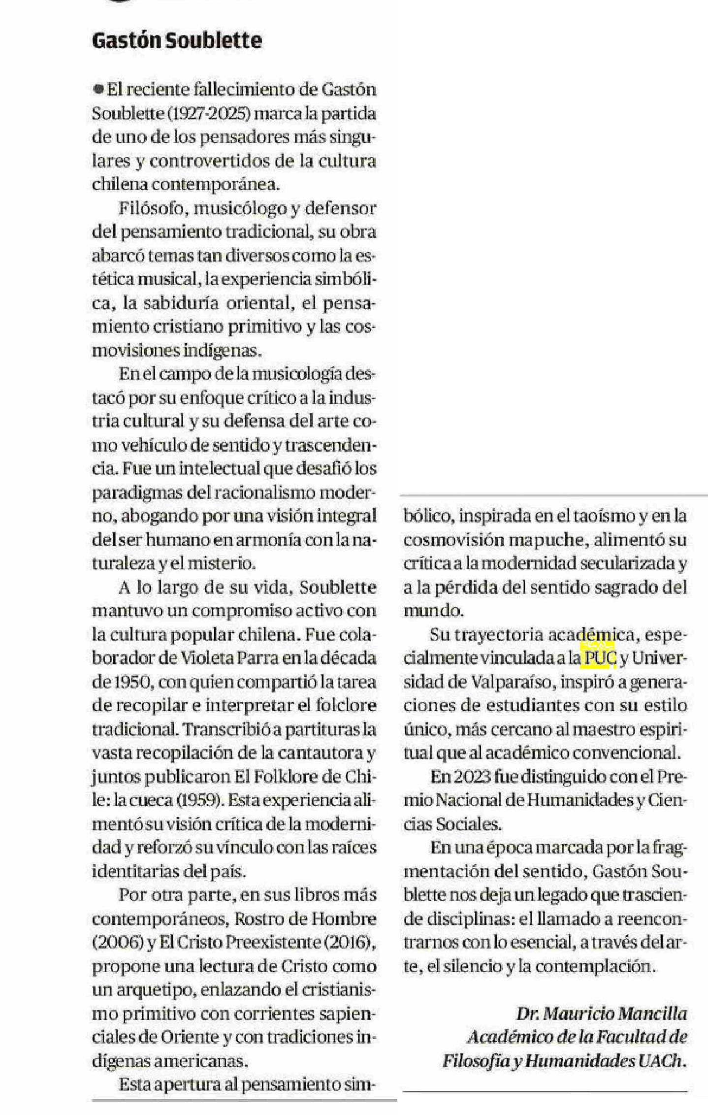 CARTAS: Gastón Soublette 29-05-2025 Diario Austral Región de Los Ríos |