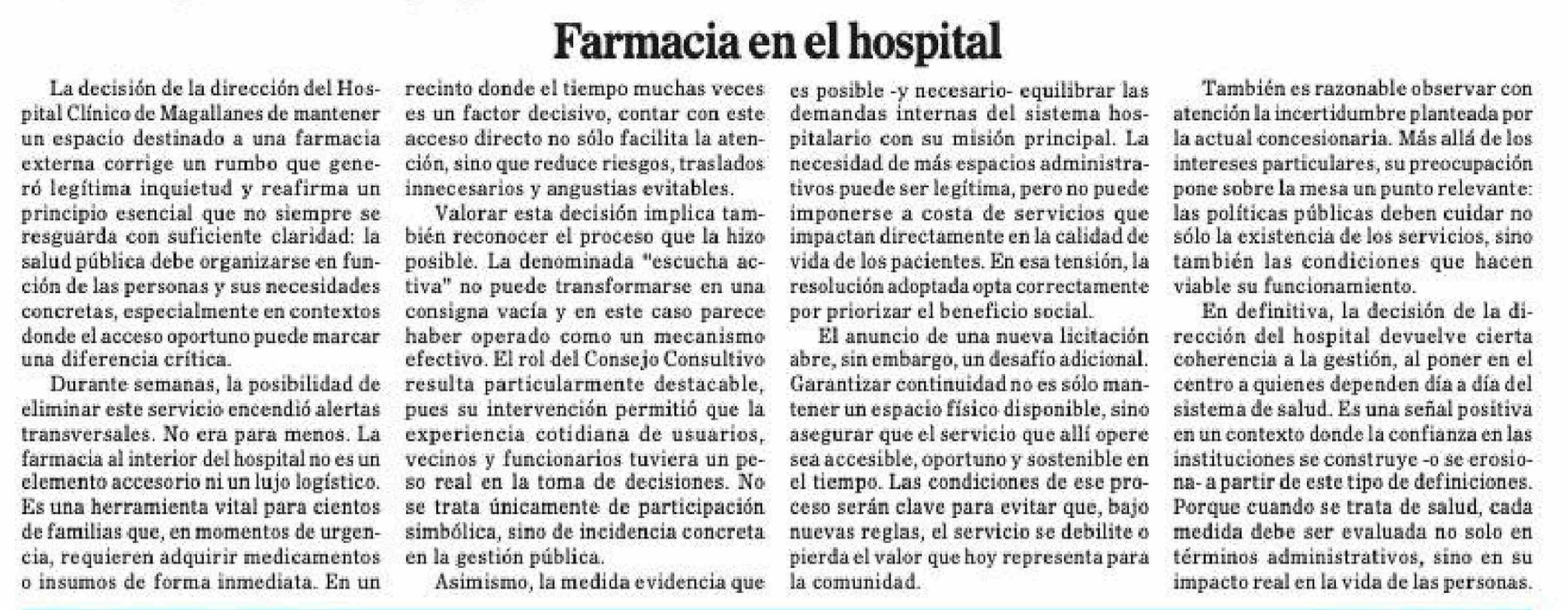Editorial: Farmacia en el hospital