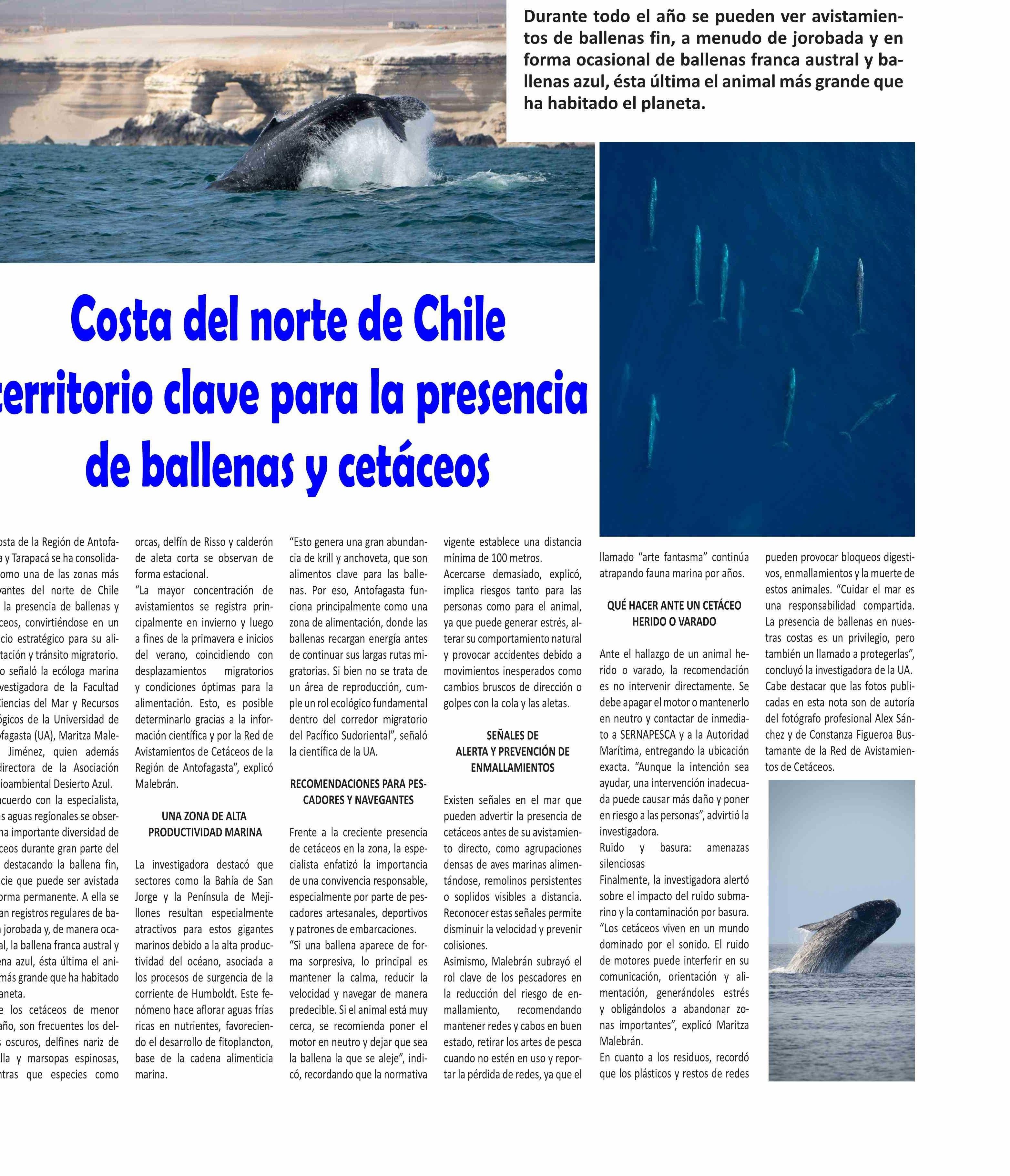 Costa del norte de Chile territorio clave para la presencia de ballenas y cetáceos 29-01-2026 El Longino |