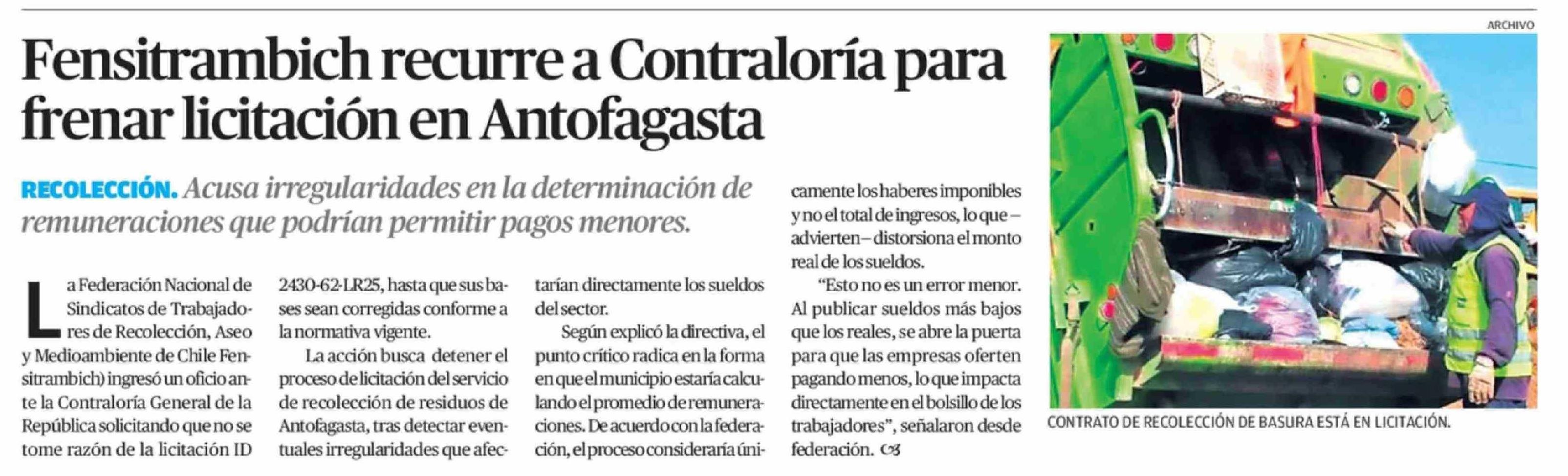 Fensitrambich recurre a Contraloría para frenar licitación en Antofagasta 09-04-2026 El Mercurio de Antofagasta |