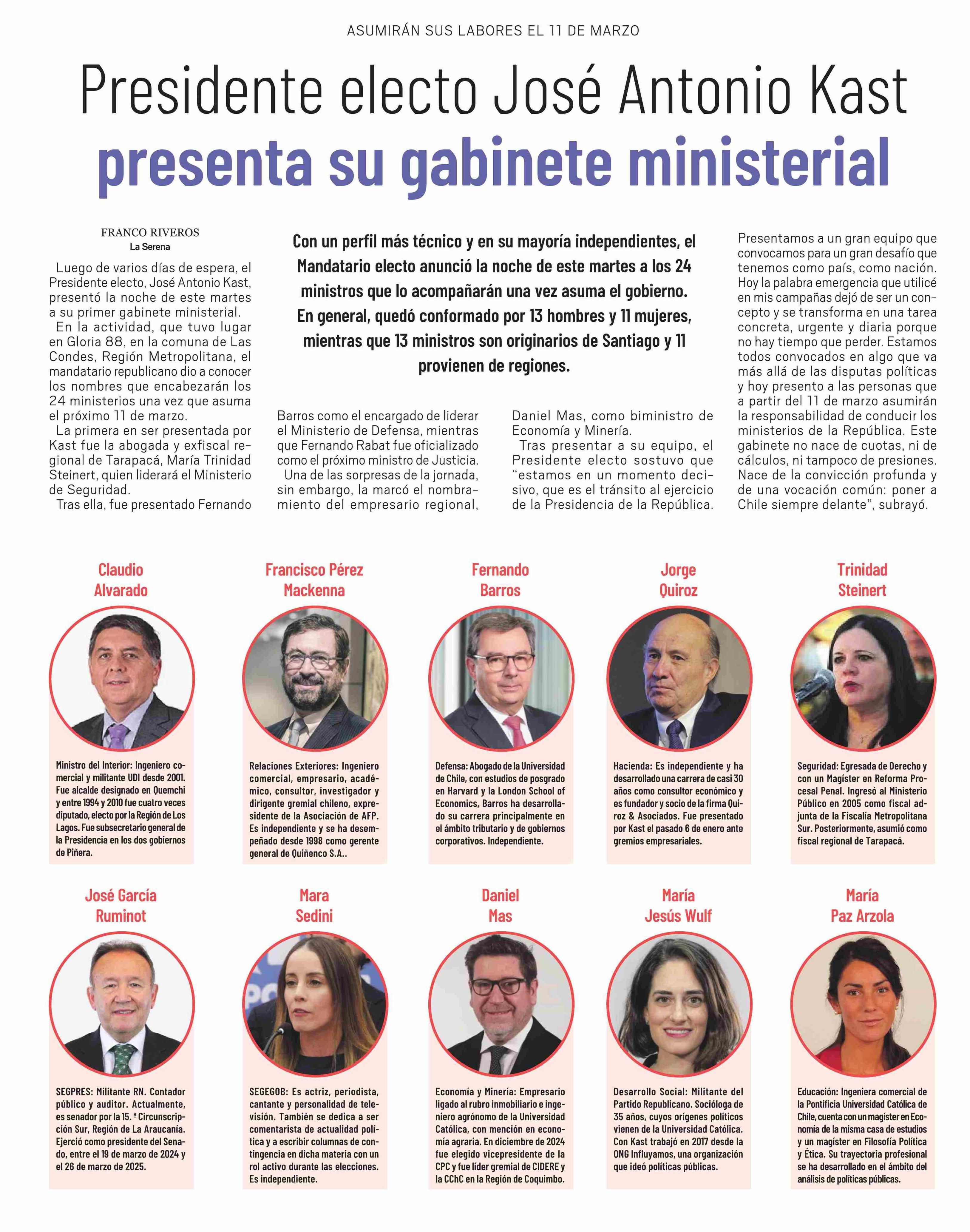 Título: Presidente electo José Antonio Kast presenta su gabinete ministerial