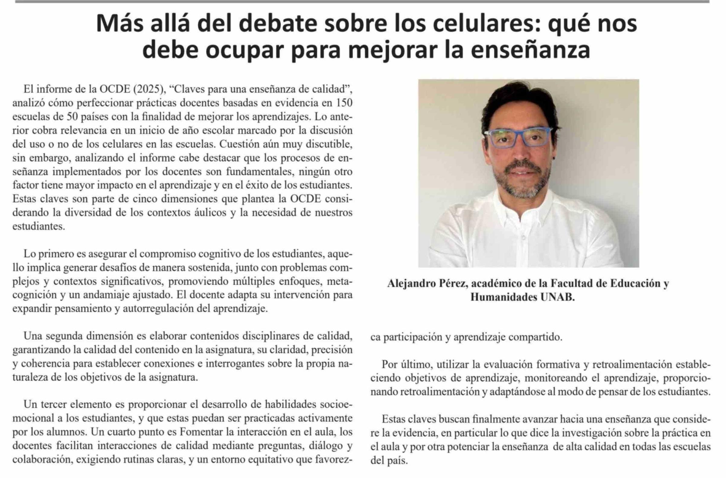Columnas de Opinión: Más allá del debate sobre los celulares: qué nos debe ocupar para mejorar la enseñanza 12-03-2026 El Heraldo |