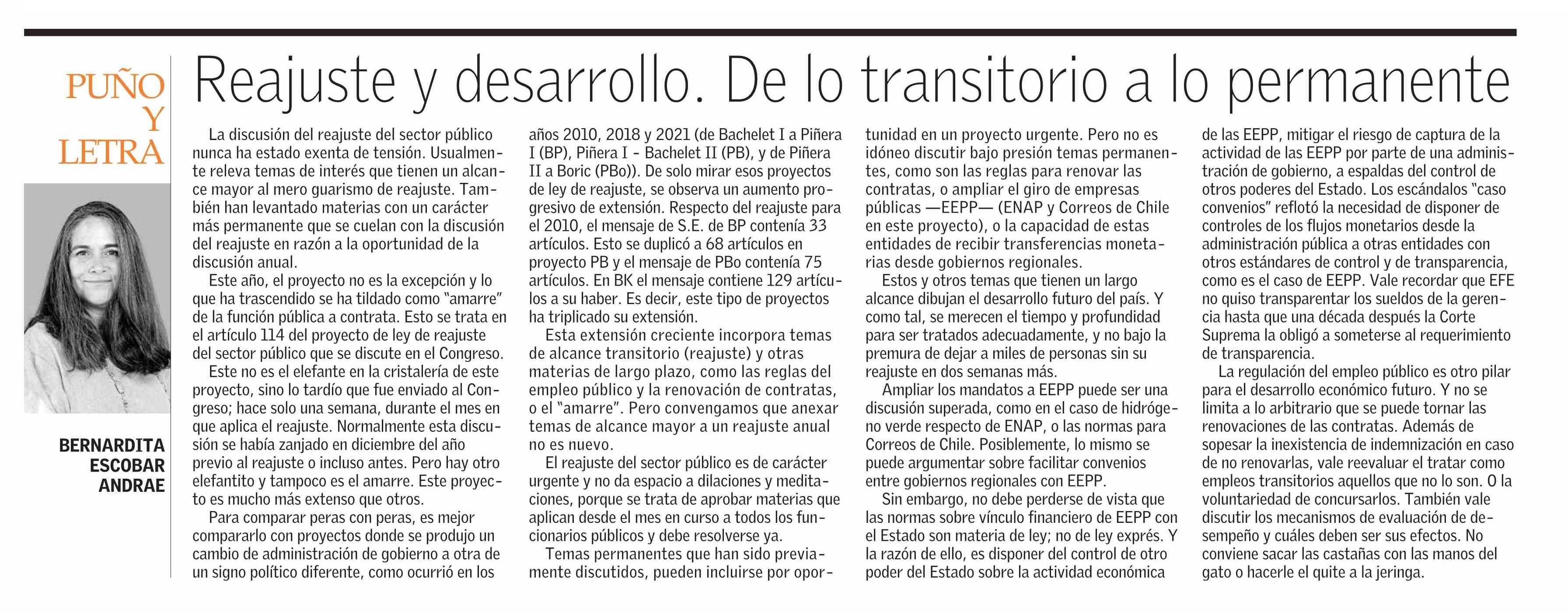 Título: COLUMNAS DE OPINIÓN: Reajuste y desarrollo. De lo transitorio a lo permanente