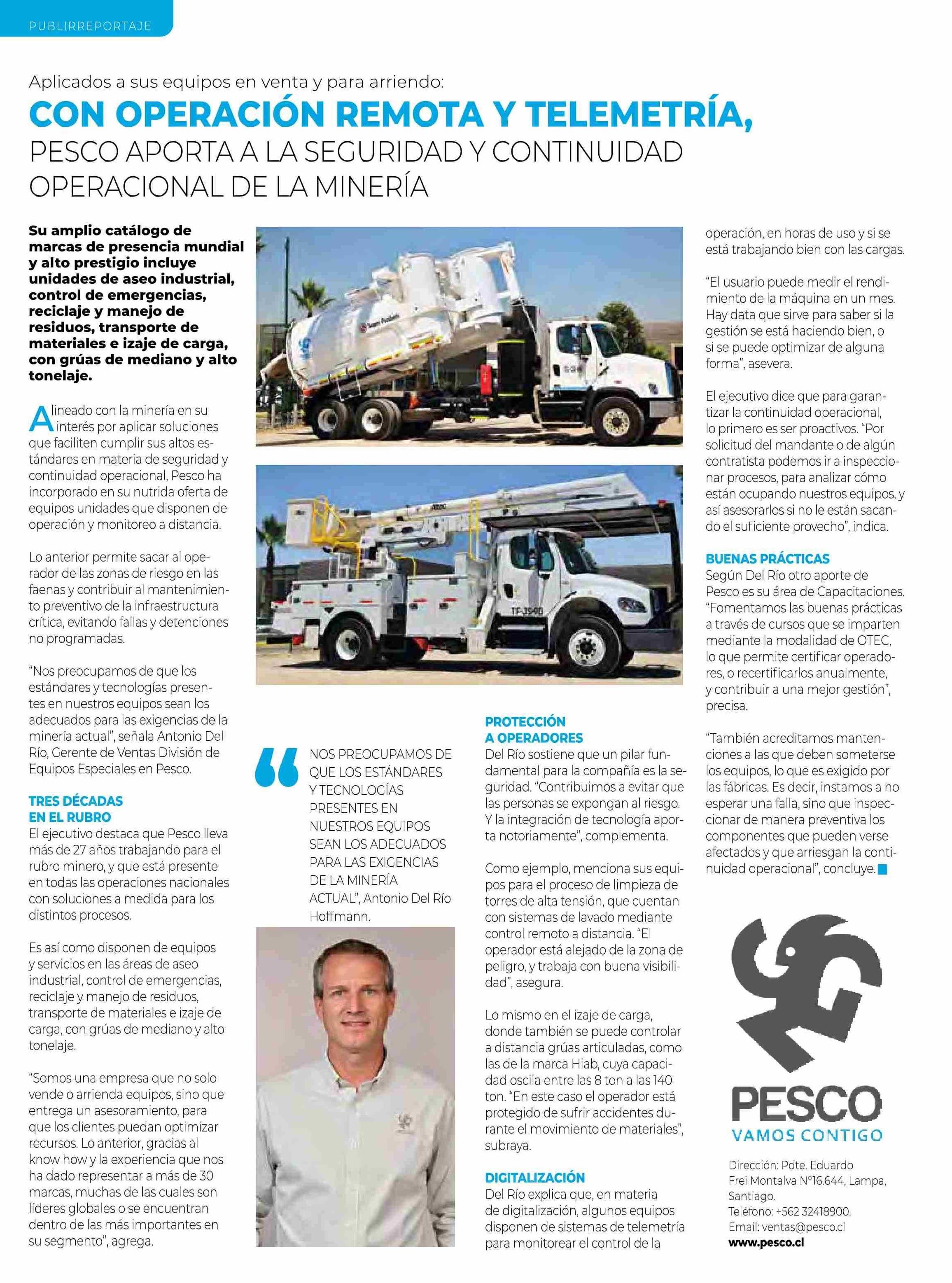 Título: CON OPERACIÓN REMOTA Y TELEMETRÍA, PESCO APORTA A LA SEGURIDAD Y CONTINUIDAD OPERACIONAL DE LA MINERÍA