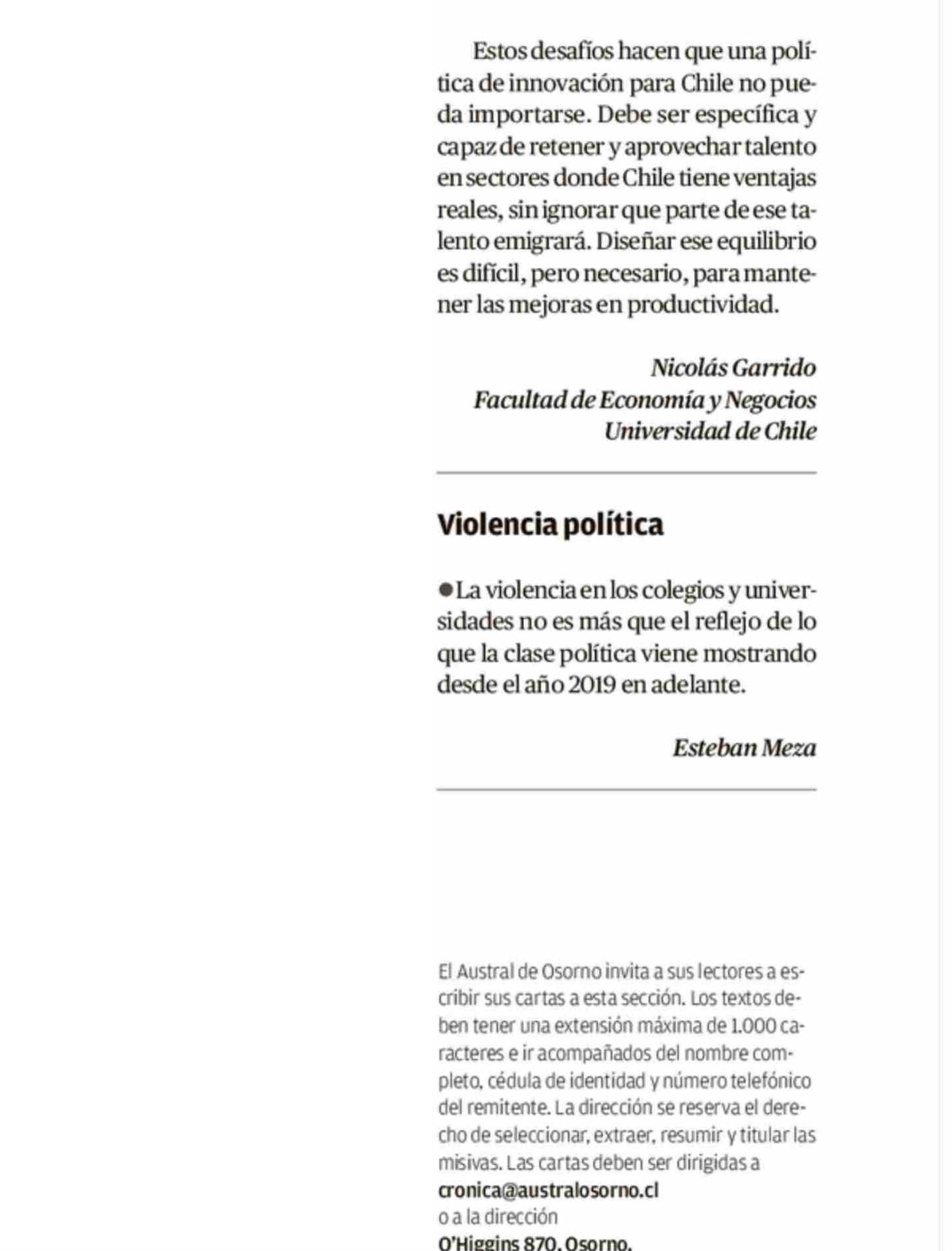 CARTAS: Desafíos de la innovación 25-04-2026 El Austral de Osorno |