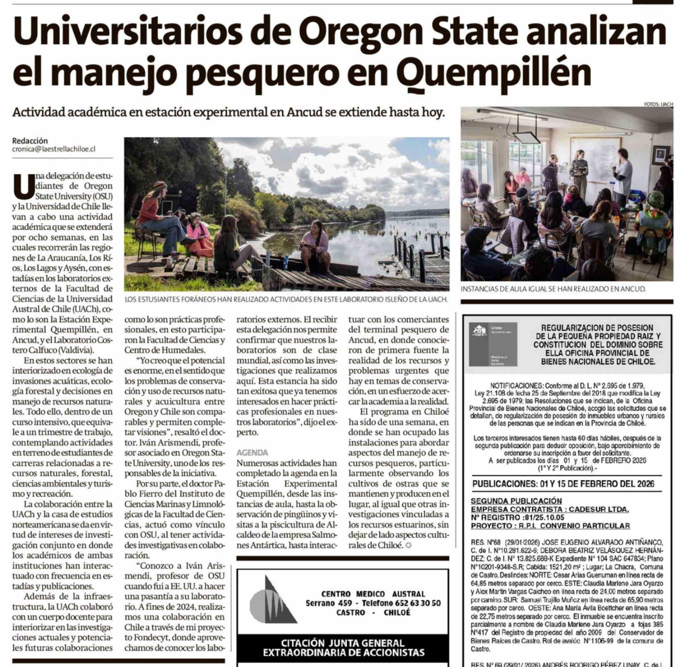 Universitarios de Oregon State analizan el manejo pesquero en Quempillén 15-02-2026 La Estrella de Chiloé |