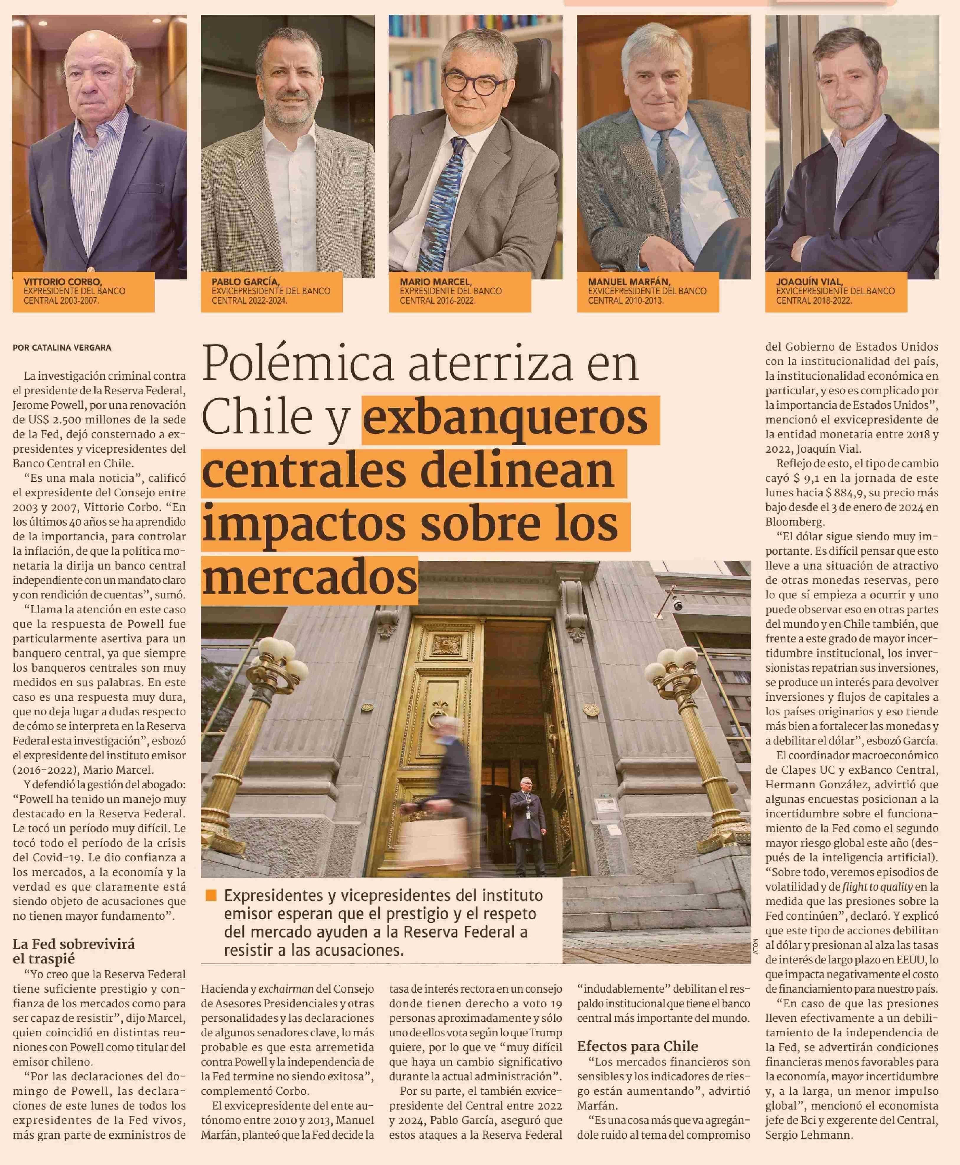 Polémica aterriza en Chile y exbanqueros centrales delinean impactos sobre los mercados 13-01-2026 Diario Financiero |