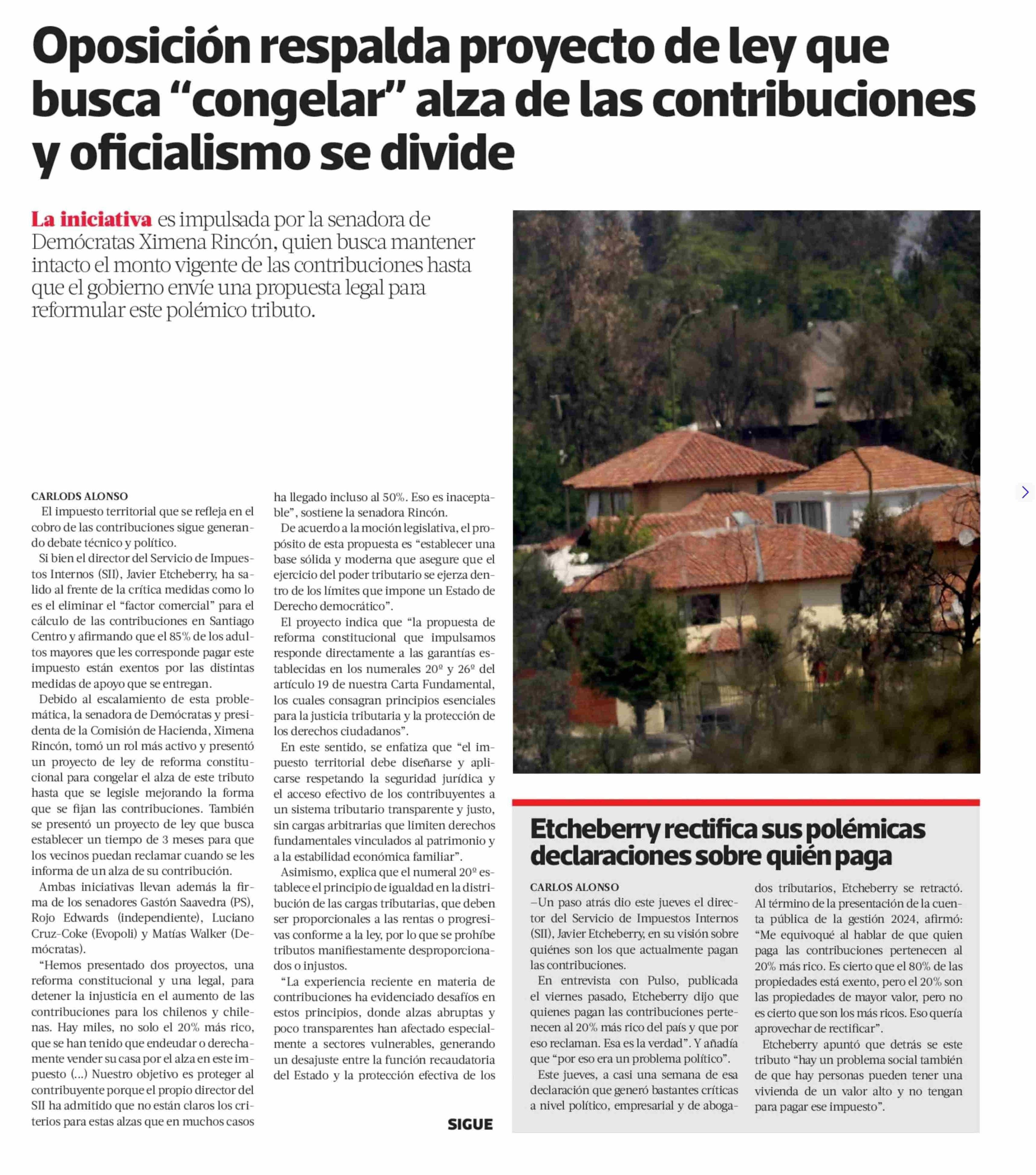 Oposición respalda proyecto de ley que busca “congelar” alza de las contribuciones y oficialismo se divide 20-06-2025 La Tercera |