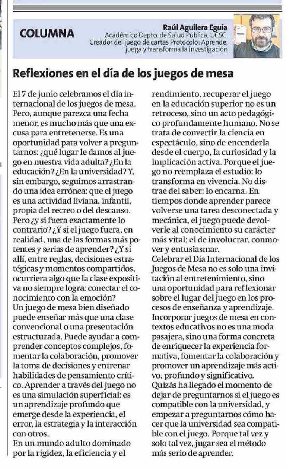 Título: Columnas de Opinión: Reflexiones en el día de los juegos de mesa