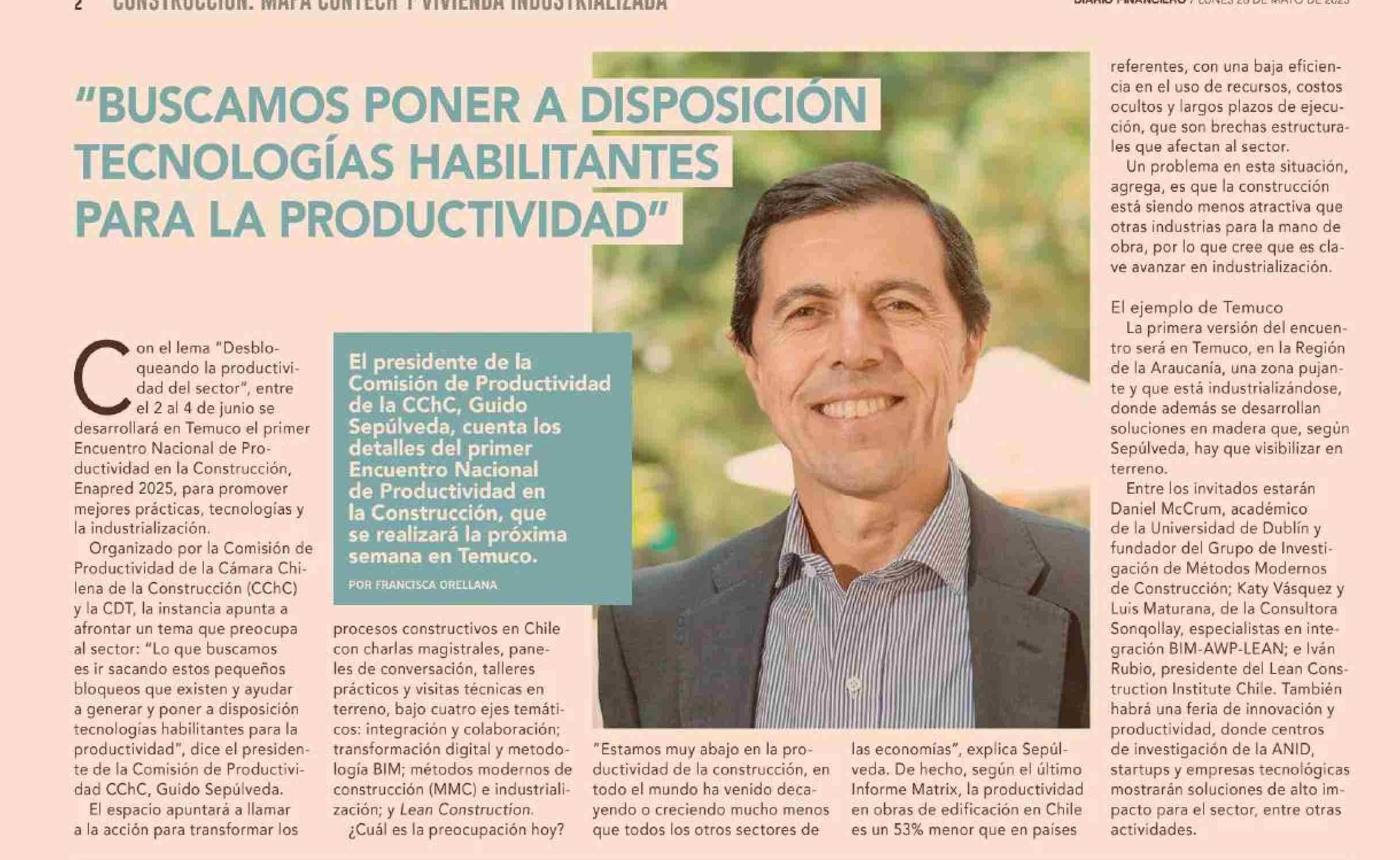 “BUSCAMOS PONER A L TECNOLOGÍAS HABILITL PARA LA PRODUCTIVIDAD” 26-05-2025 Diario Financiero |
