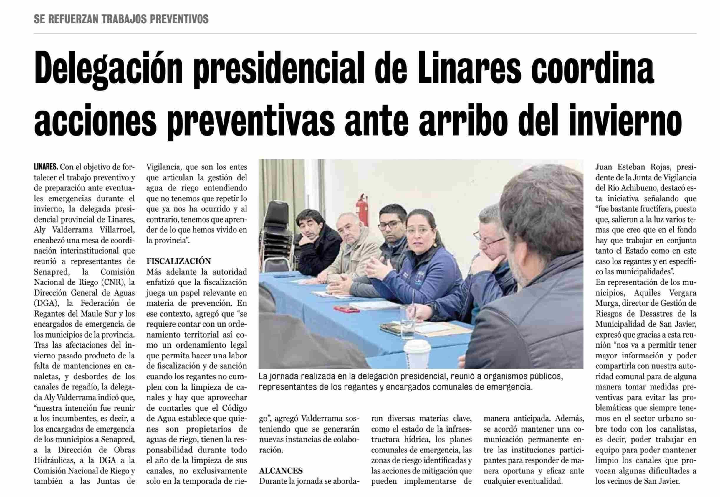 Delegación presidencial de Linares coordina acciones preventivas ante arribo del invierno 23-05-2025 La Prensa de Curicó |