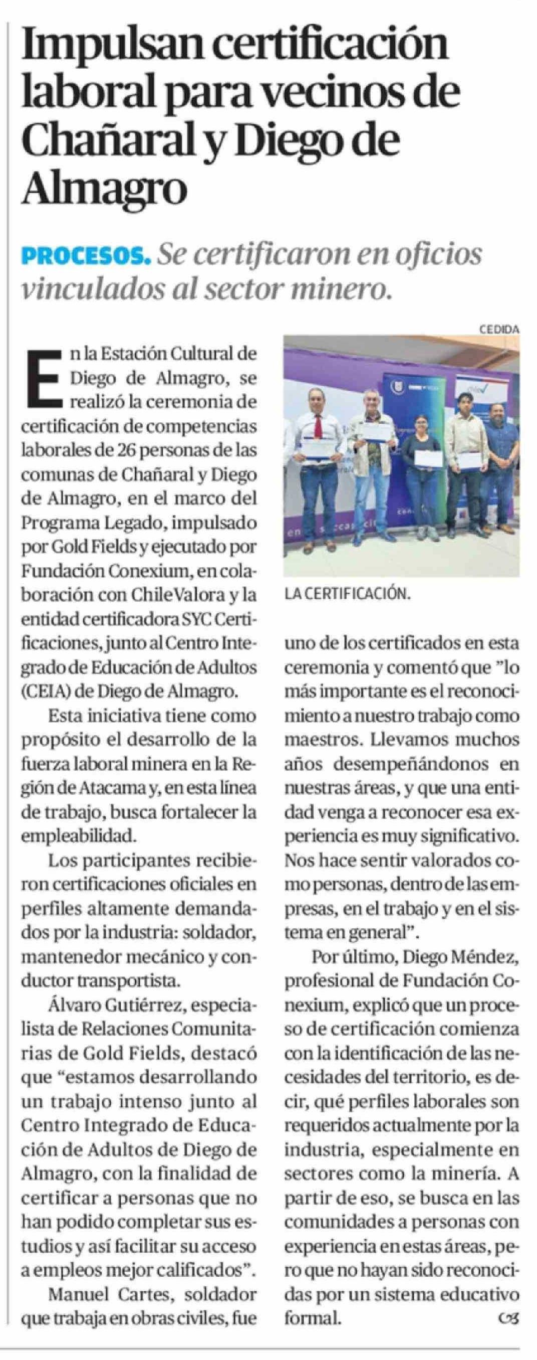 Impulsan certificación laboral para vecinos de Chañaral y Diego de Almagro 28-03-2026 El Diario de Atacama |