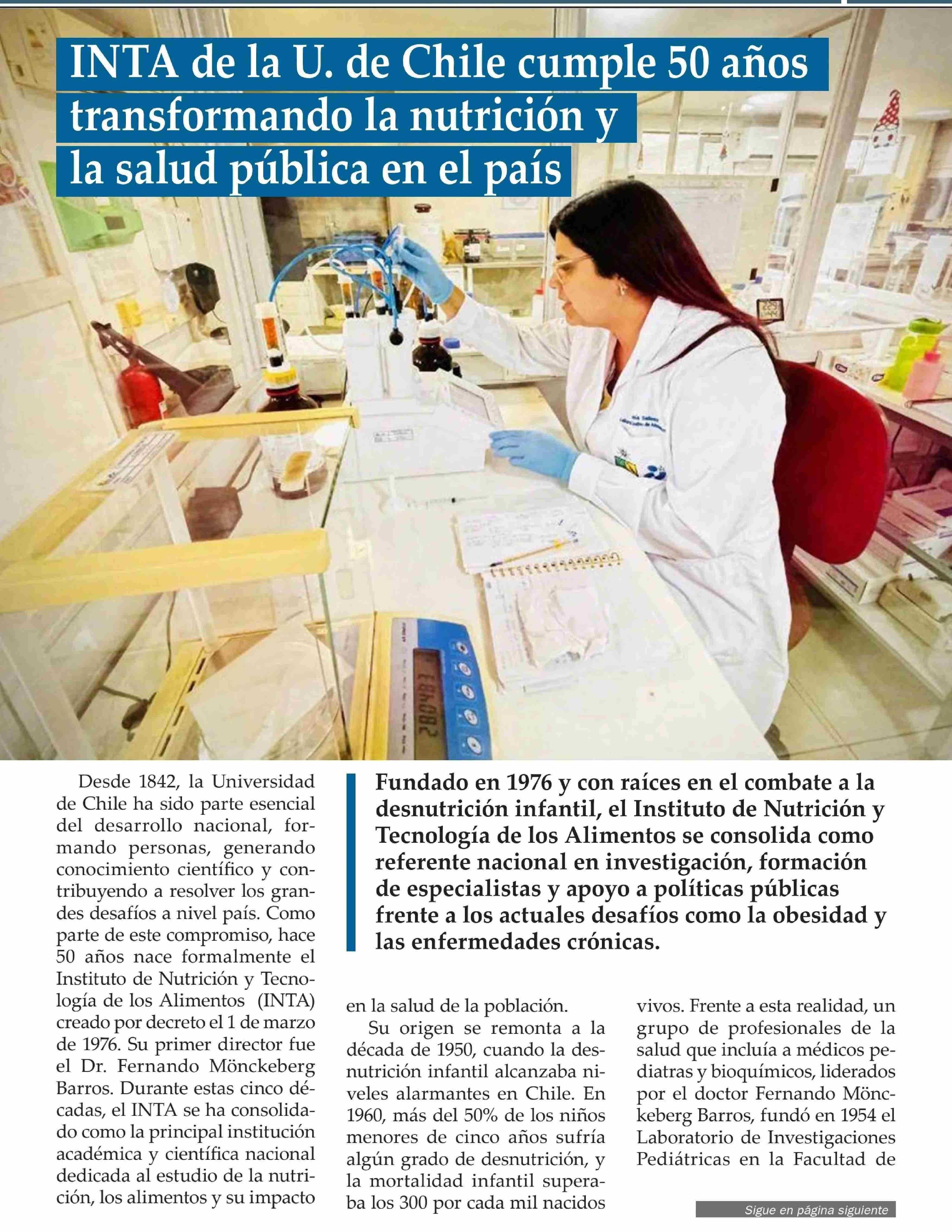 Título: INTA de la U. de Chile cumple 50 años transformando la a la salud pública en el país