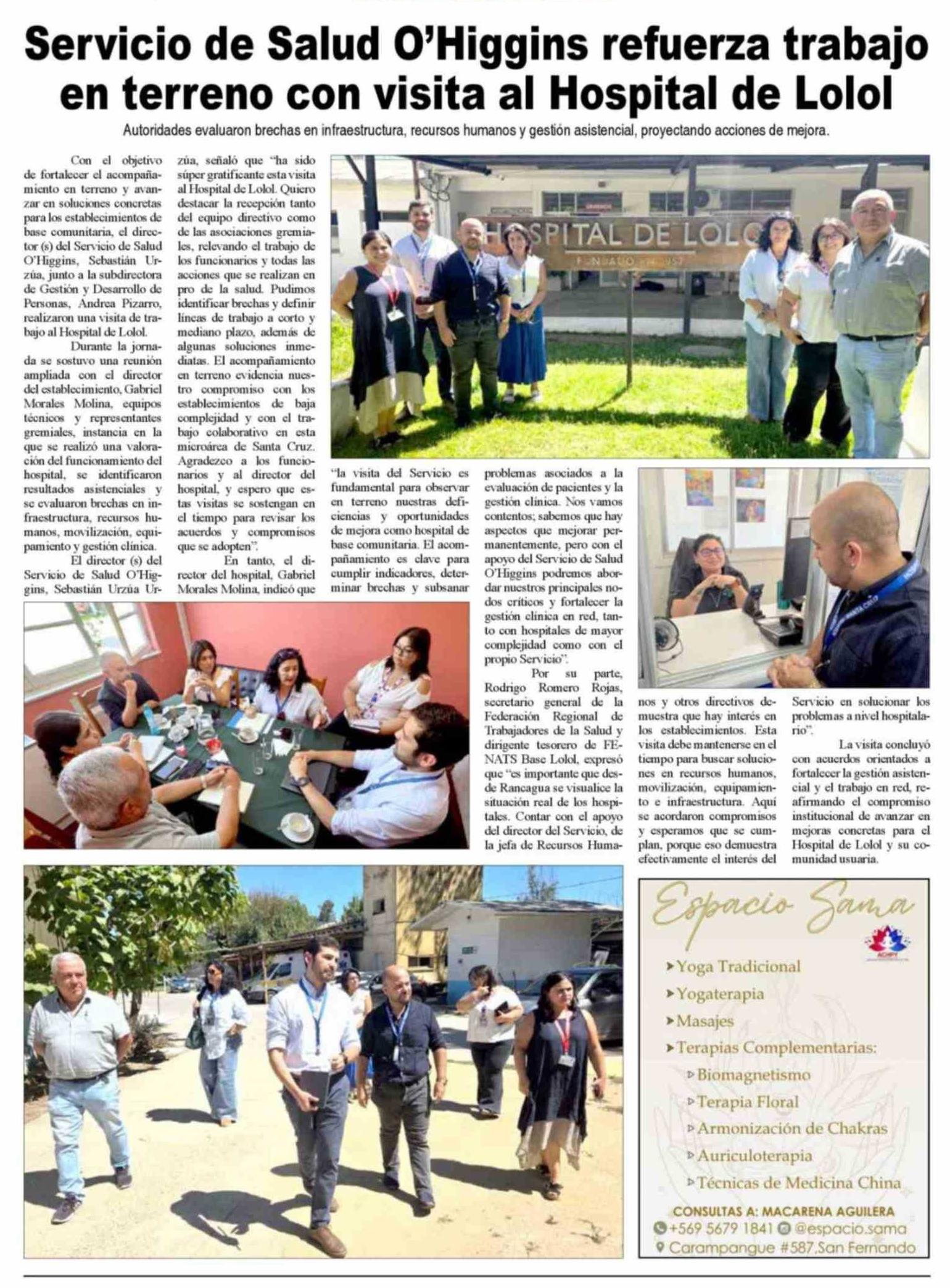 Título: Servicio de Salud O'Higgins refuerza trabajo en terreno con visita al Hospital de Lolol
