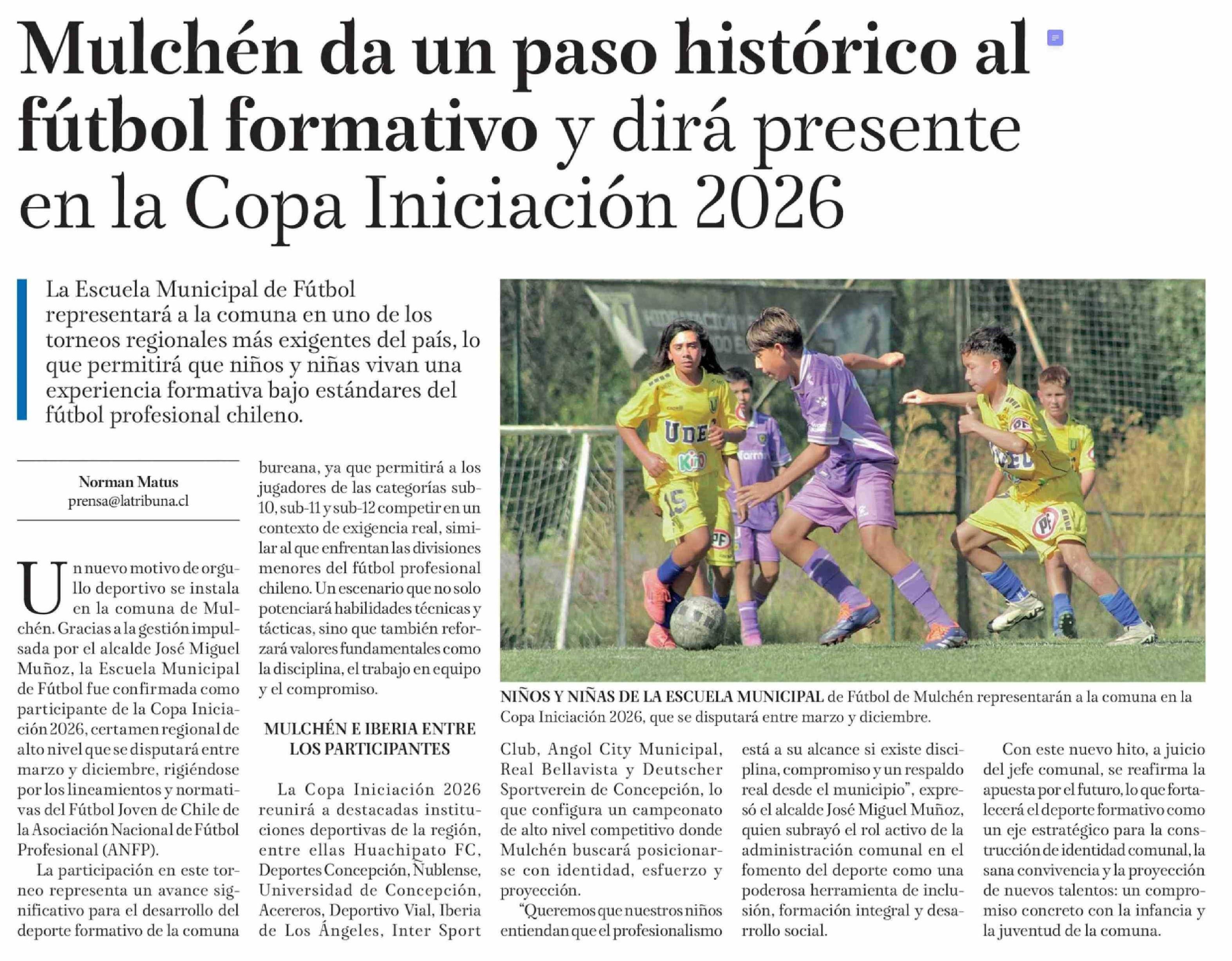 | Título: | Mulchén da un paso histórico al fútbol formativo y dirá presente en la Copa Iniciación 2026 |