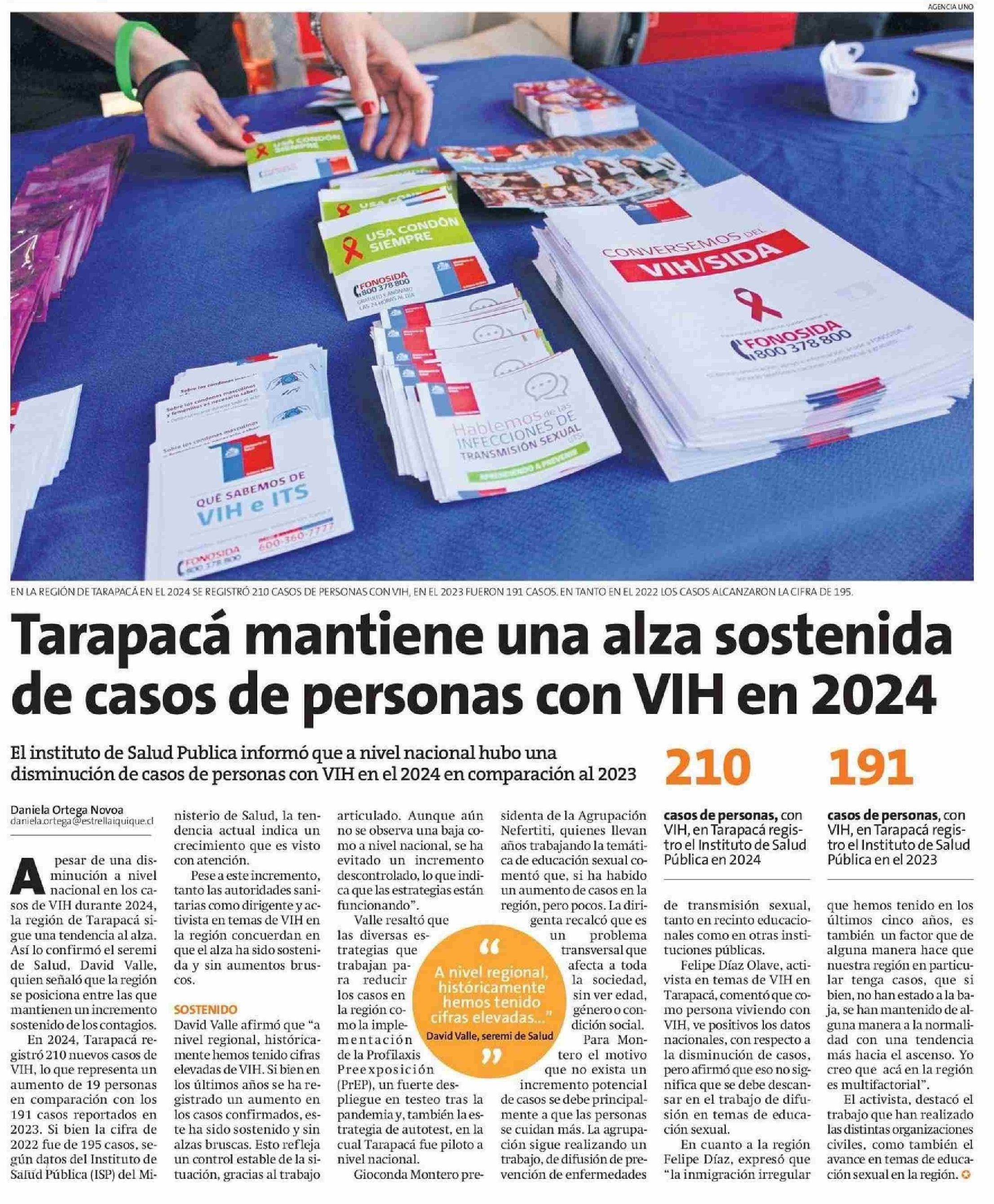 | Título: | Tarapacá mantiene una alza sostenida de casos de personas con VIH en 2024 |