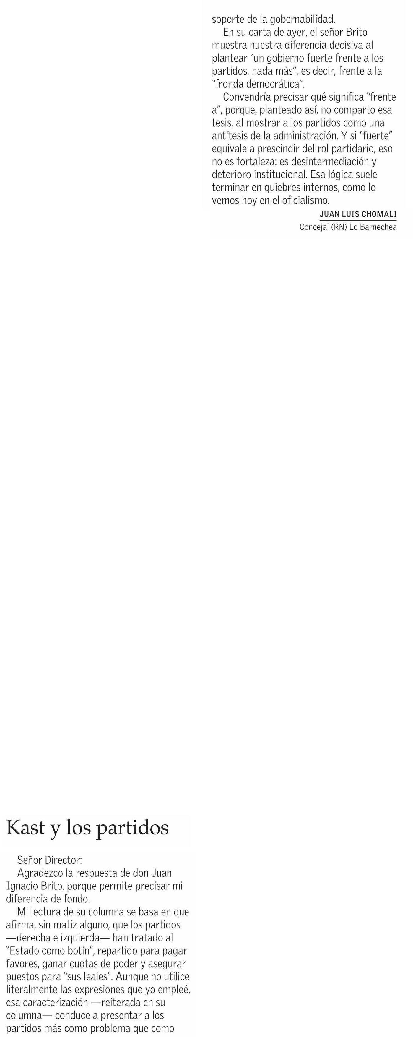 | Título: | Cartas: Kast y los partidos |