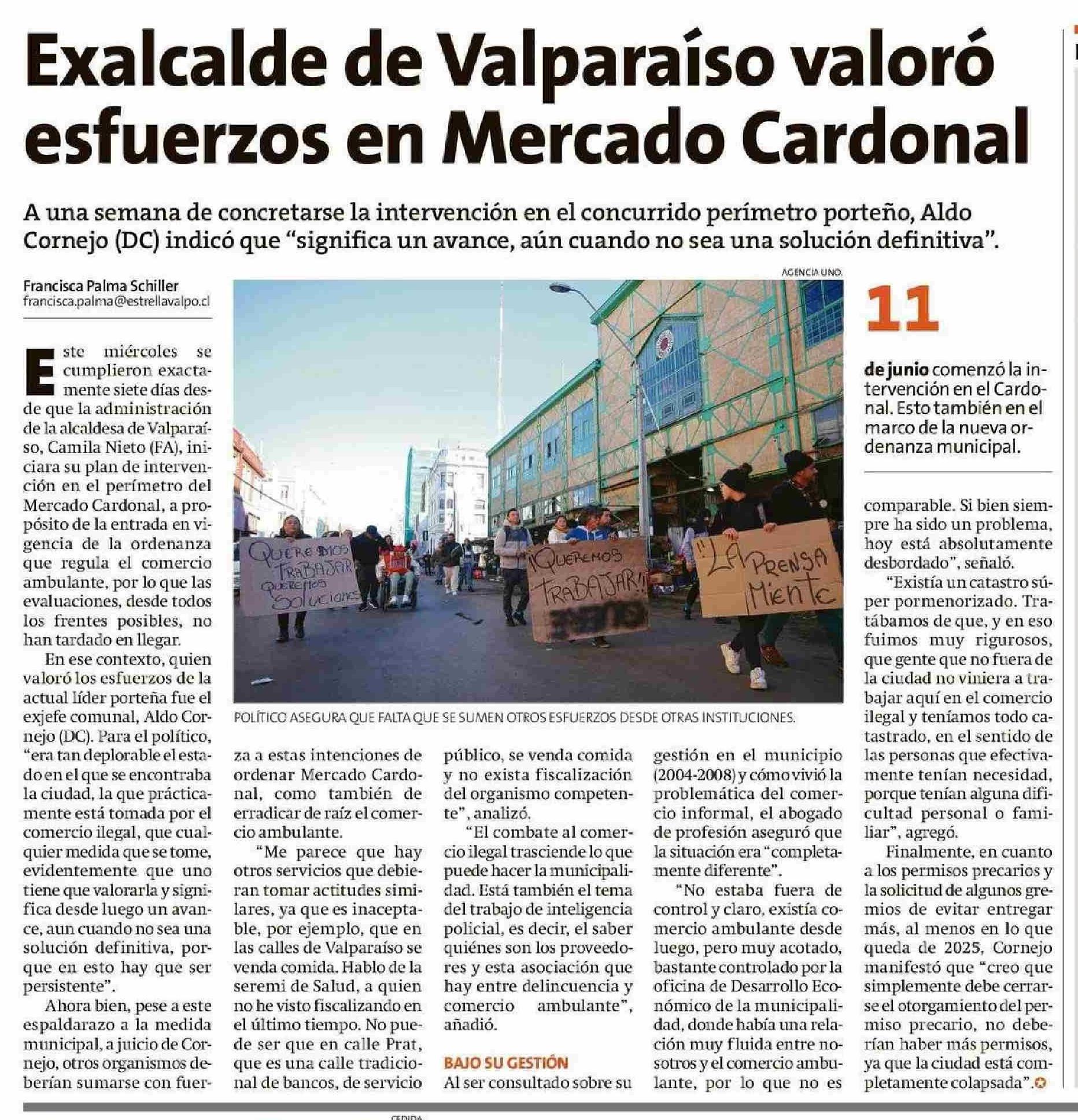 Exalcalde de Valparaíso valoró esfuerzos en Mercado Cardonal 21-06-2025 La Estrella de Valparaíso |
