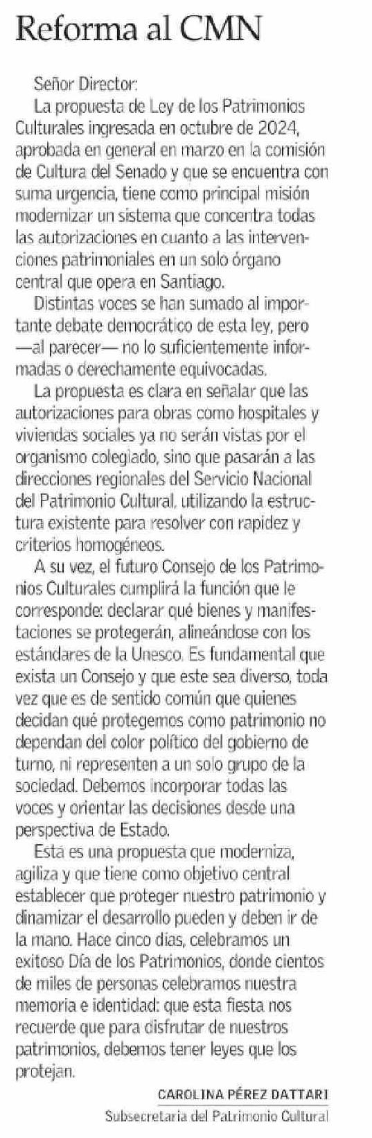 CARTAS: Reforma al CMN 30-05-2025 El Mercurio |