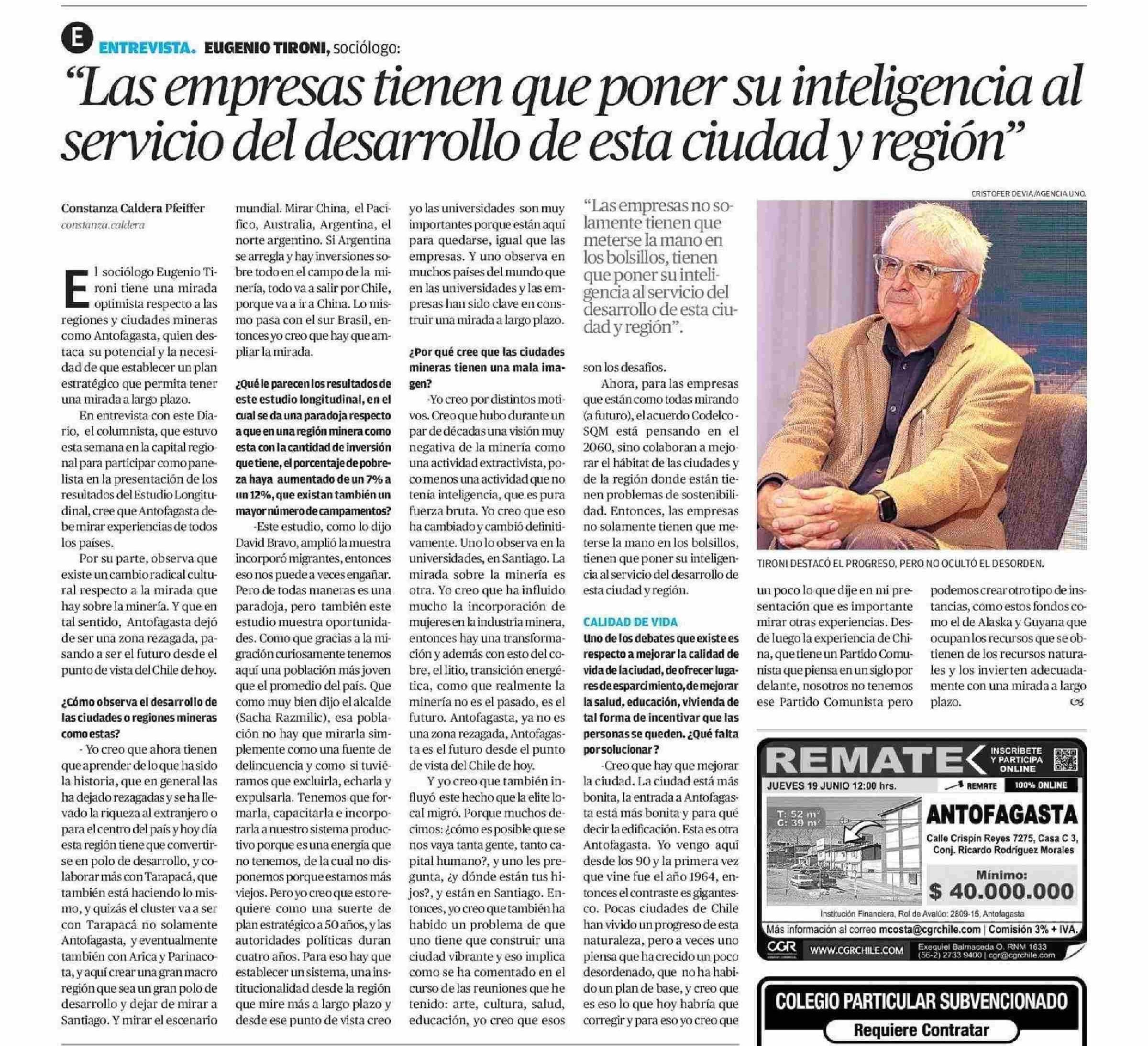 “Las empresas tienen que poner su inteligencia al servicio del desarrollo de esta ciudad y región” 01-06-2025 El Mercurio de Antofagasta |
