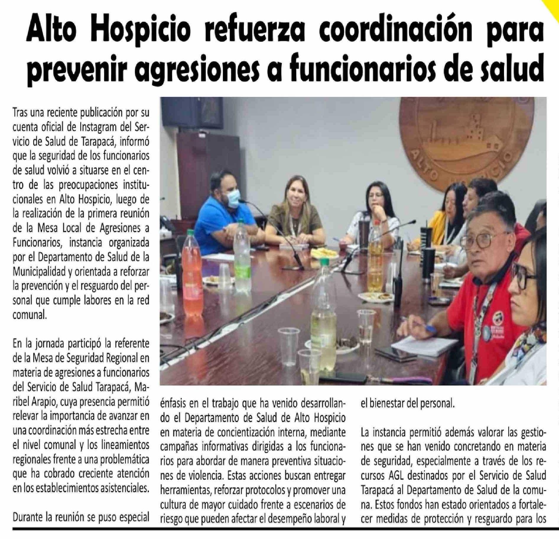 Título: Alto Hospicio refuerza coordinación para prevenir agresiones a funcionarios de salud