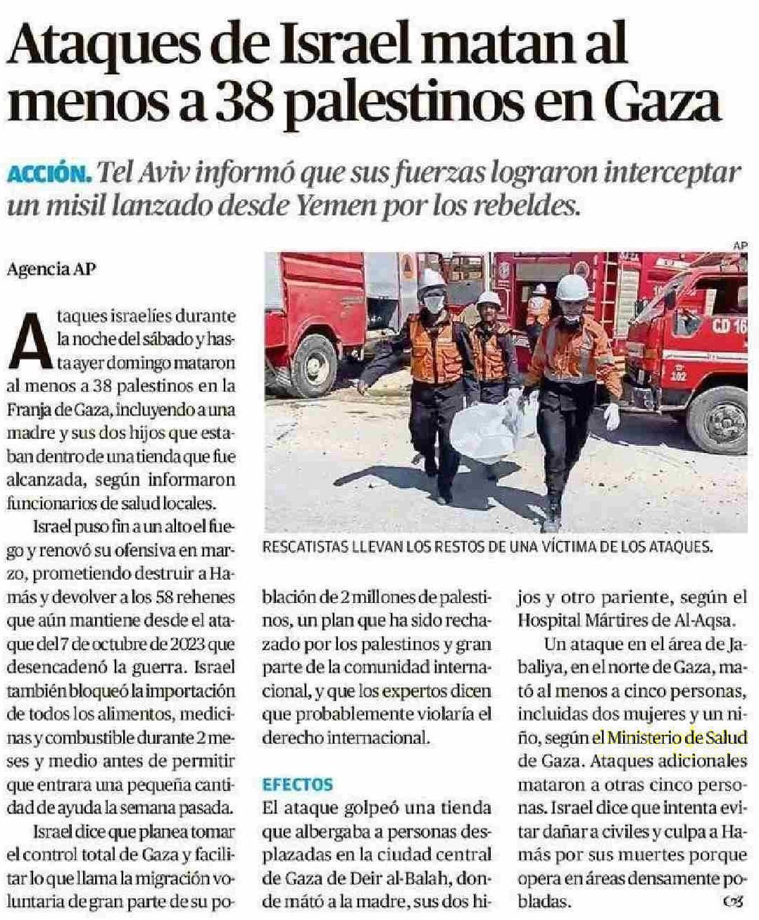 Ataques de Israel matan al menos a 38 palestinos en Gaza 26-05-2025 El Mercurio de Valparaíso |