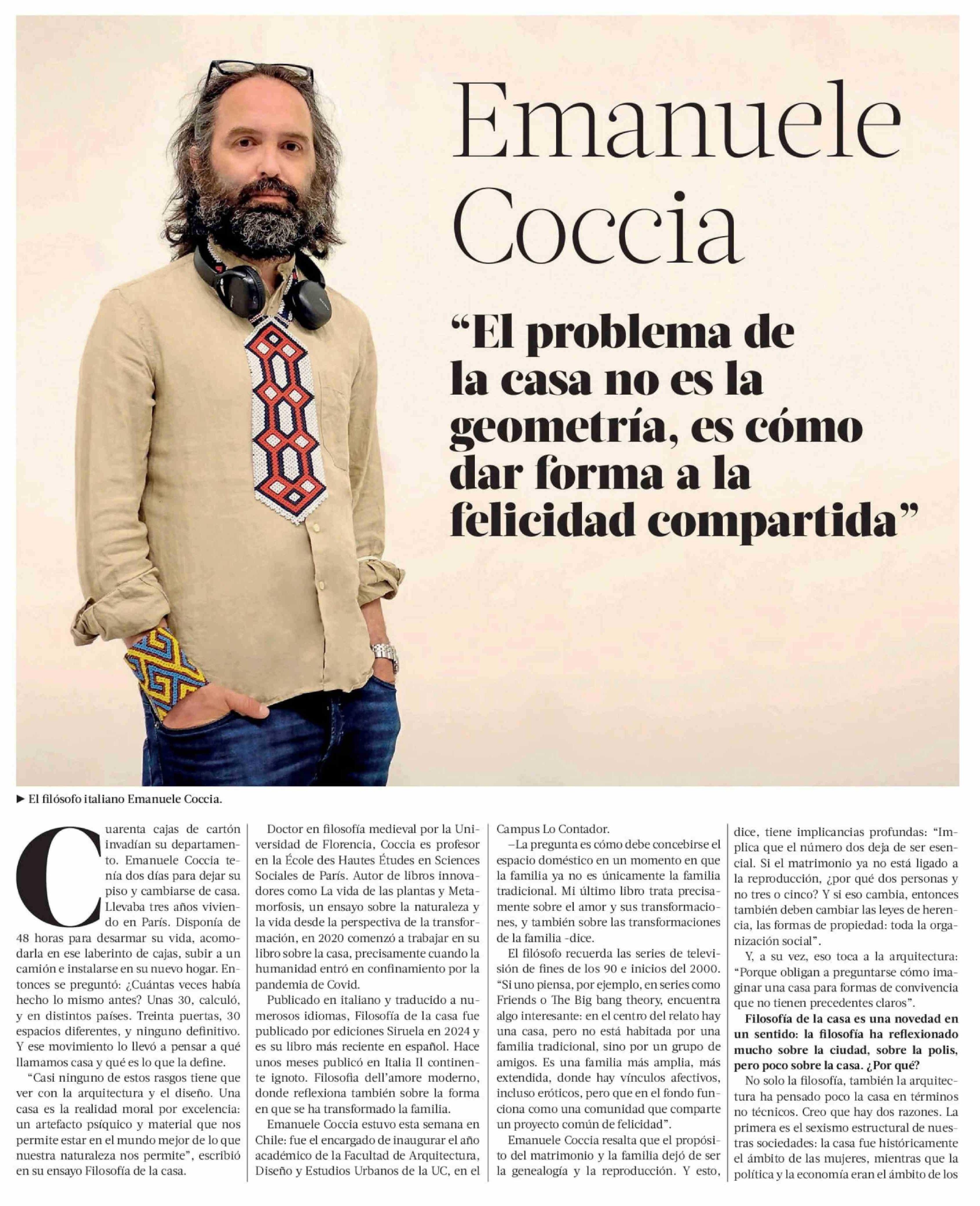 Coccia Emanuele Coccia "El problema de la casa no es la geometría, es cómo dar forma a la felicidad compartida" 29-03-2026 La Tercera |