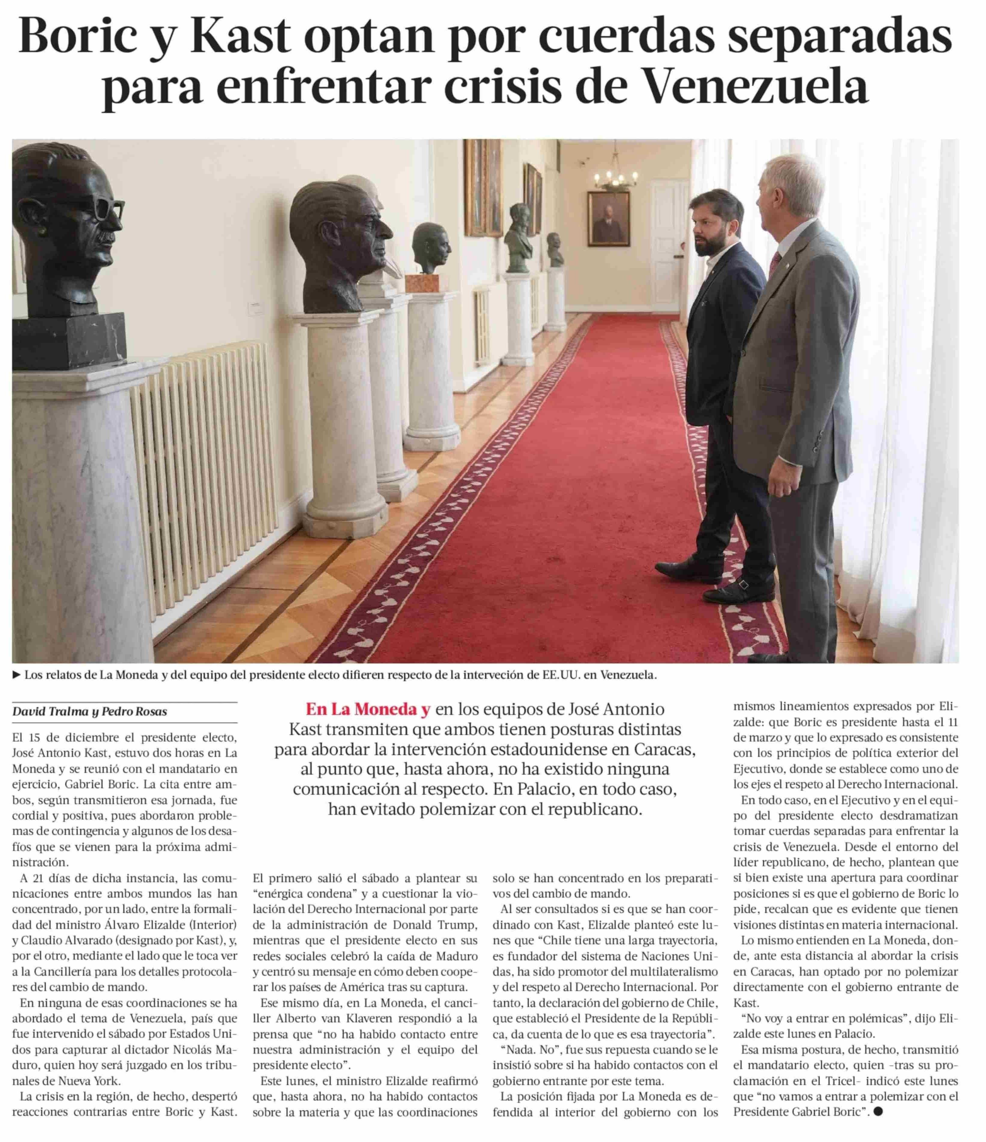 Título: Boric y Kast optan por cuerdas separadas para enfrentar crisis de Venezuela