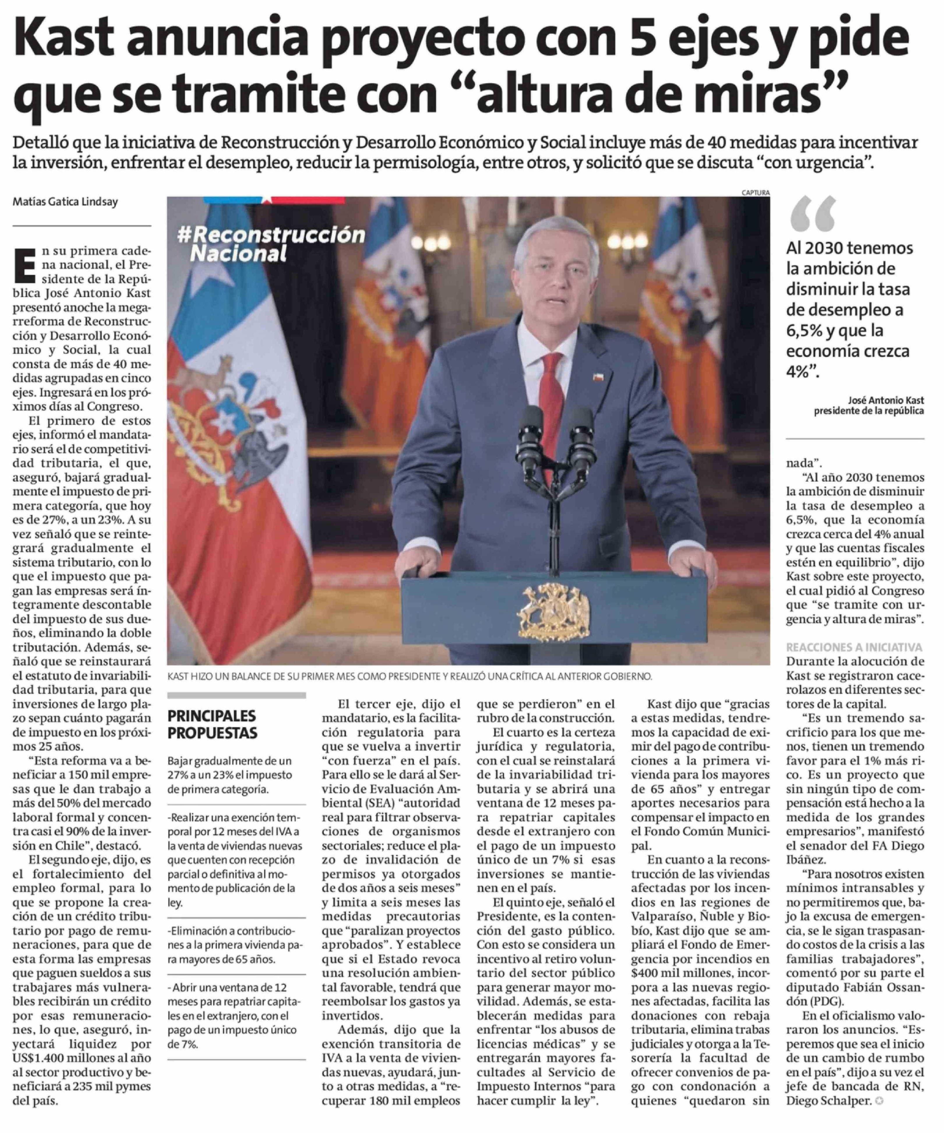 Título: Kast anuncia proyecto con 5 ejes y pide que se tramite con "altura de miras"