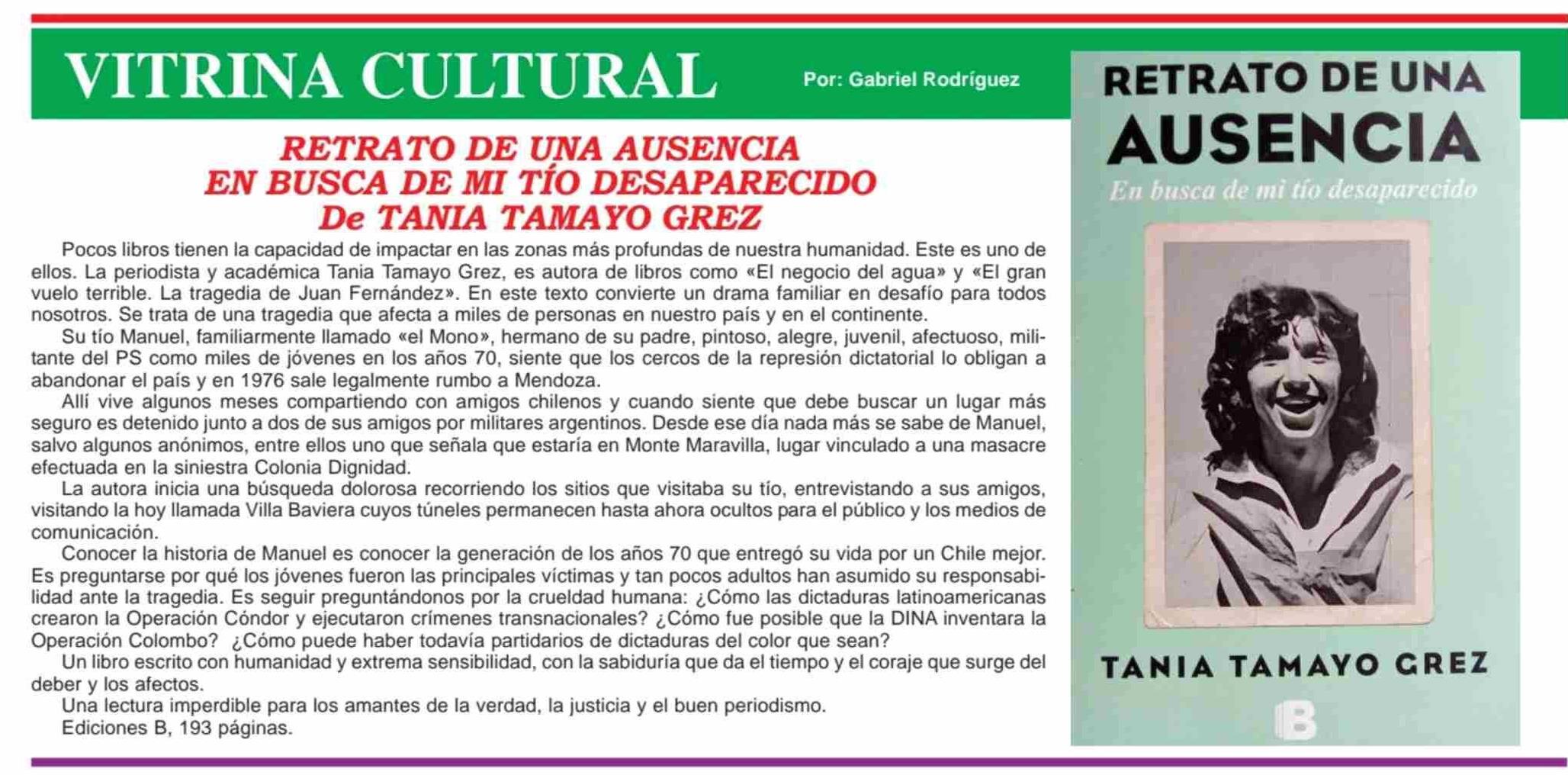RETRATO DE UNA AUSENCIA EN BUSCA DE MI TÍO DESAPARECIDO De TANIA TAMAYO GREZ 07-02-2026 Maule Hoy |