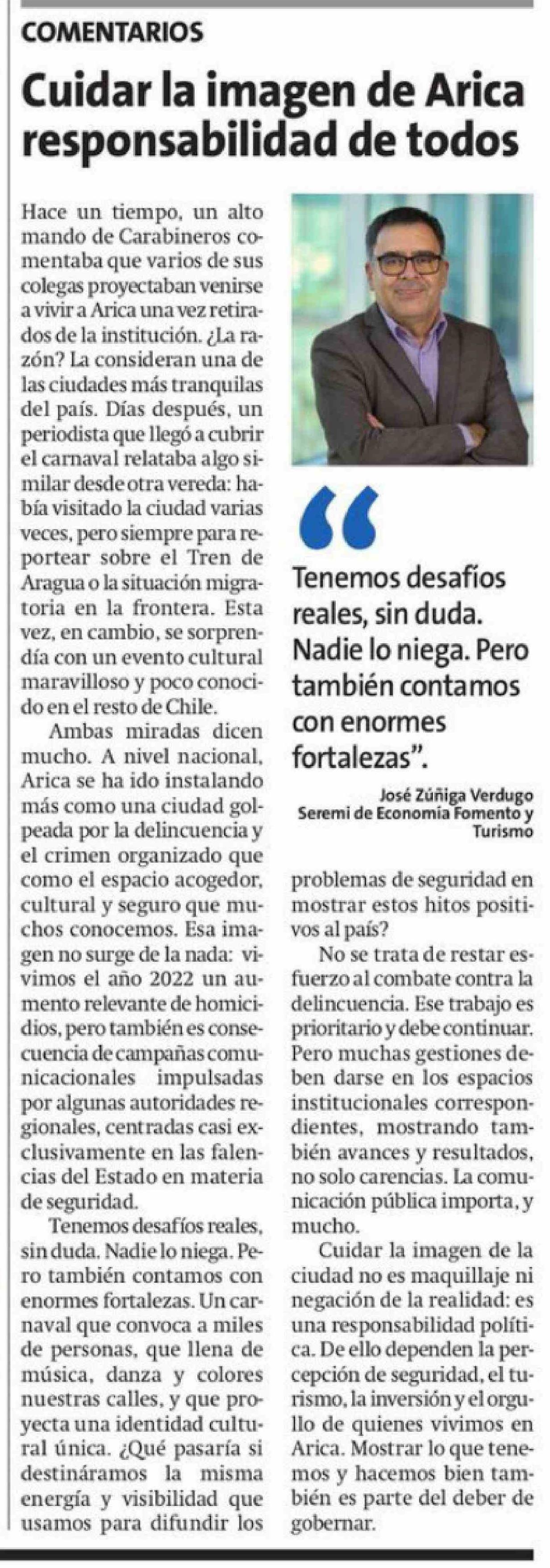 Columnas de Opinión: Cuidar la imagen de Arica responsabilidad de todos 04-02-2026 La Estrella de Arica |
