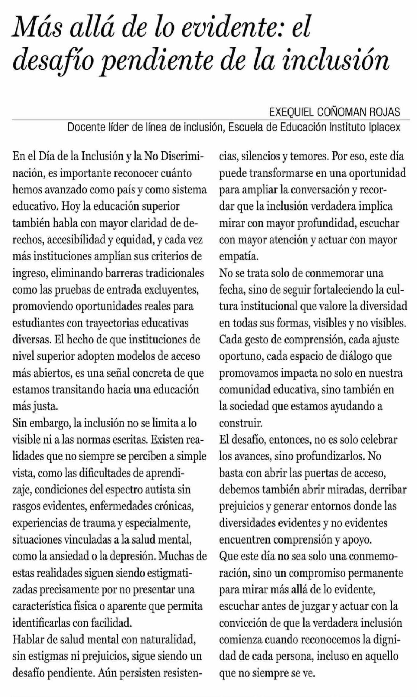 Título: Cartas: Más allá de lo evidente: el desafío pendiente de la inclusión