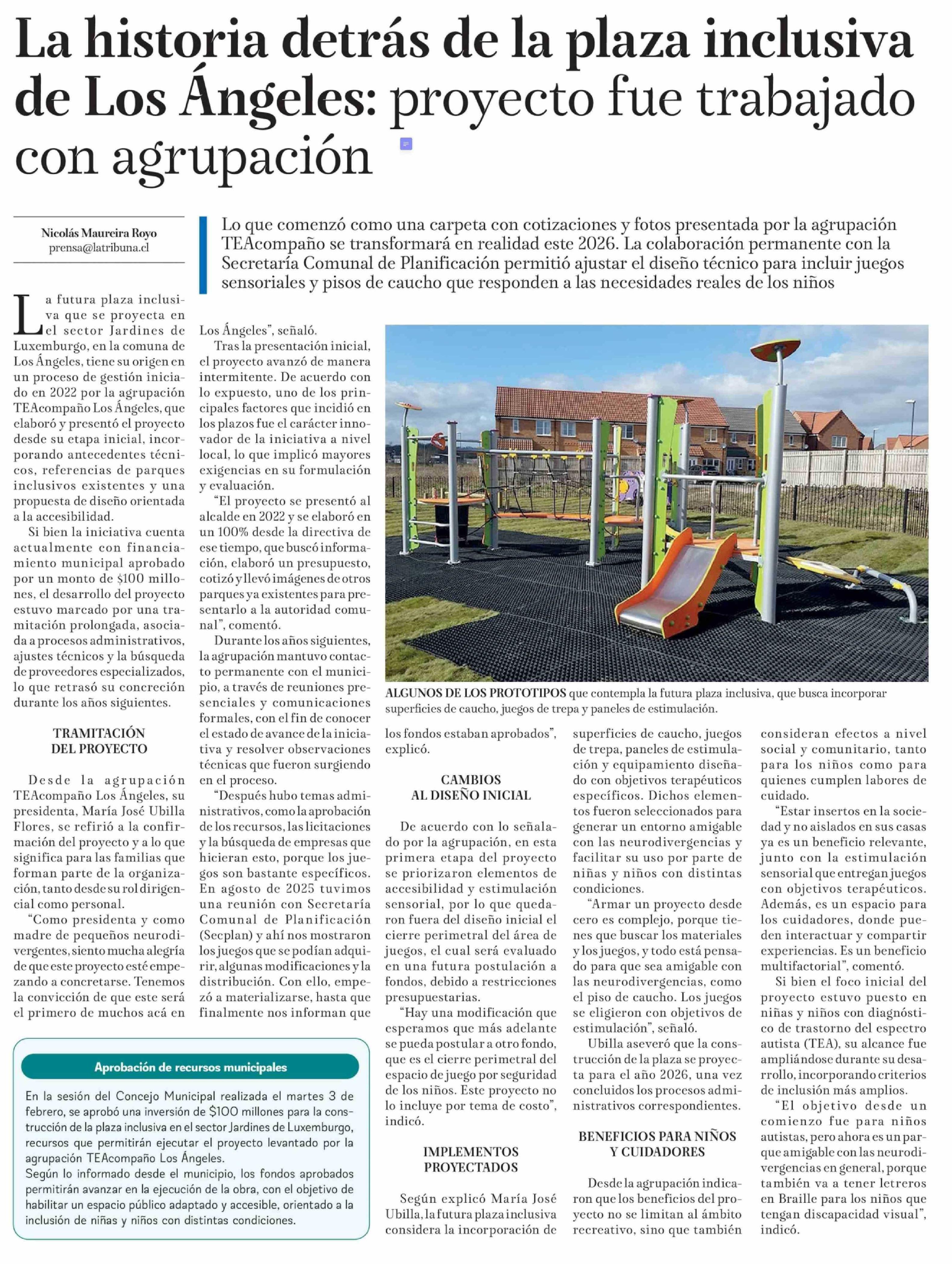 Título: La historia detrás de la plaza inclusiva de Los Ángeles: proyecto fue trabajado con agrupación