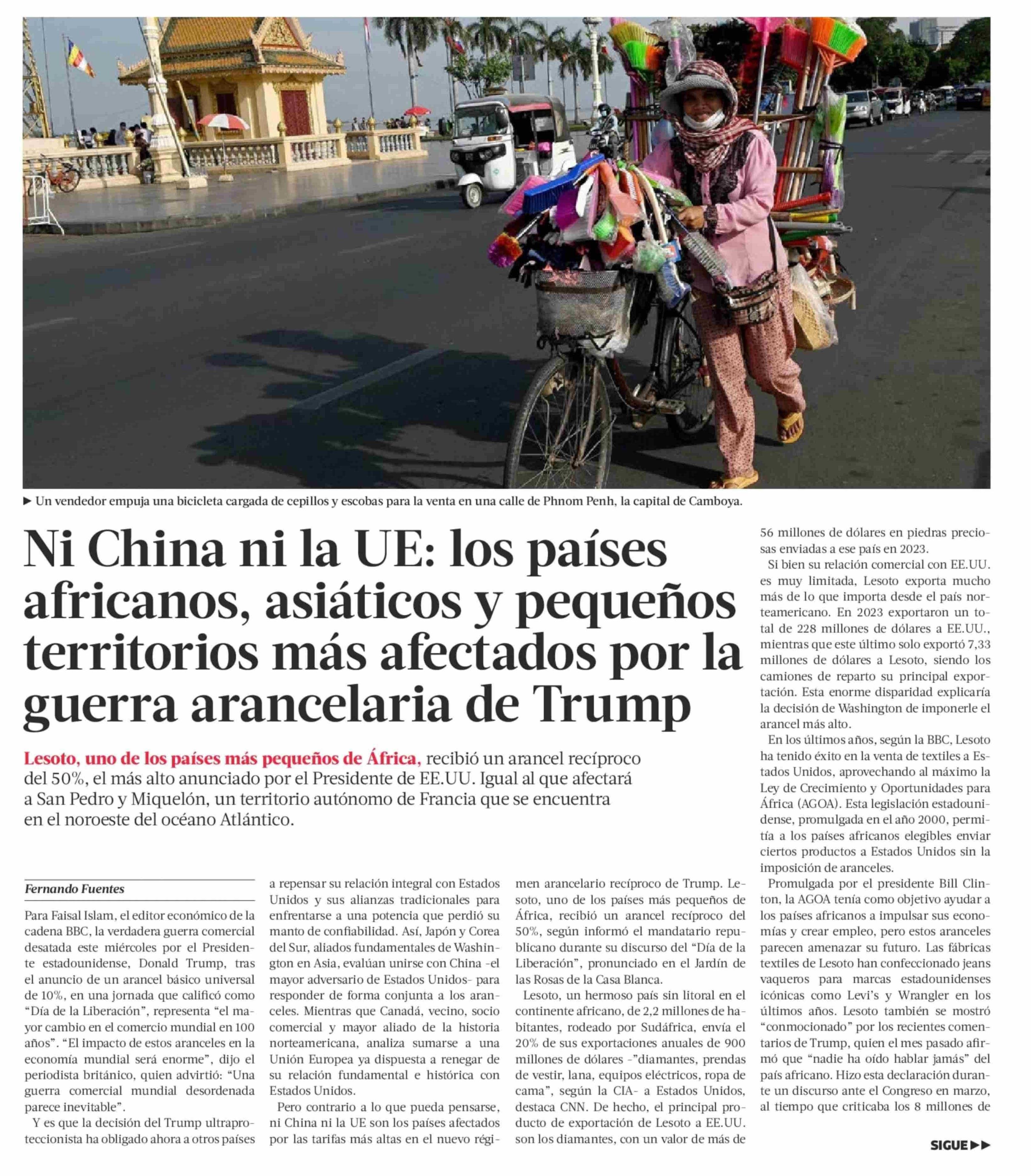 | Título: | Ni China ni la UE: los países africanos, asiáticos y pequeños territorios más afectados por la guerra arancelaria de Trump |