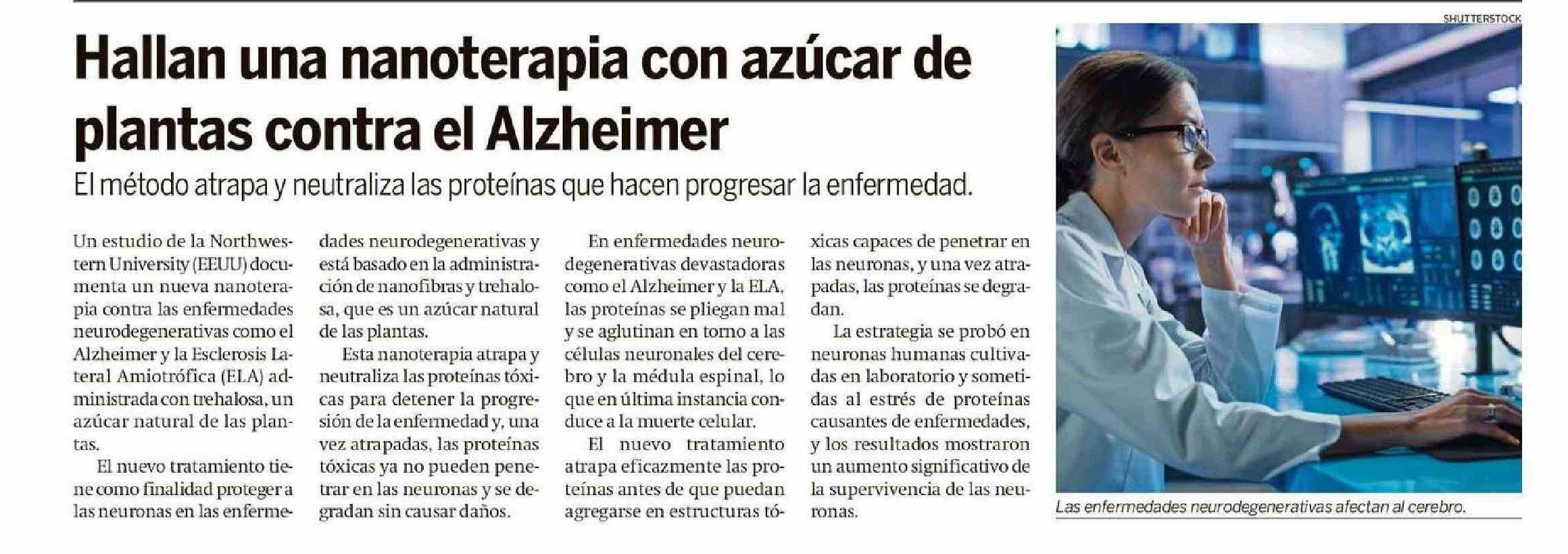 | Título: | Hallan una nanoterapia con azúcar de plantas contra el Alzheimer |