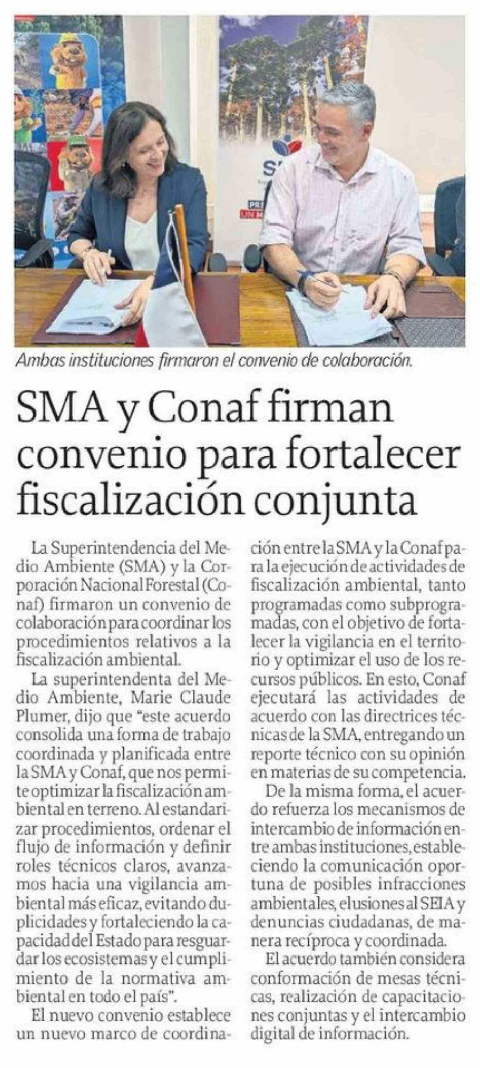 Título: SMA y Conaf firman convenio para fortalecer fiscalización conjunta