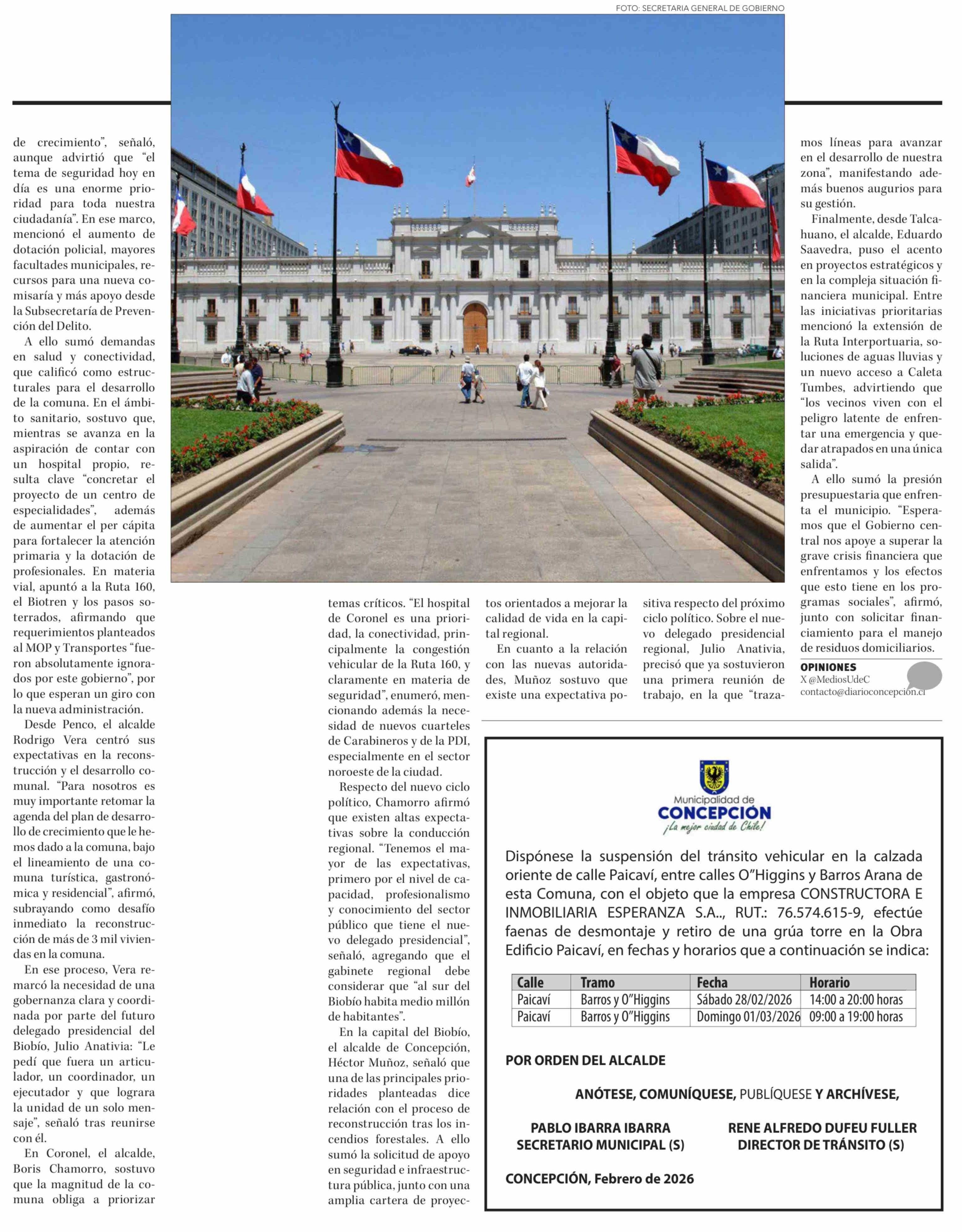 Municipios del Biobío fijan exigencias al Gobierno entrante y piden giro regionalista 26-02-2026 Diario Concepción |
