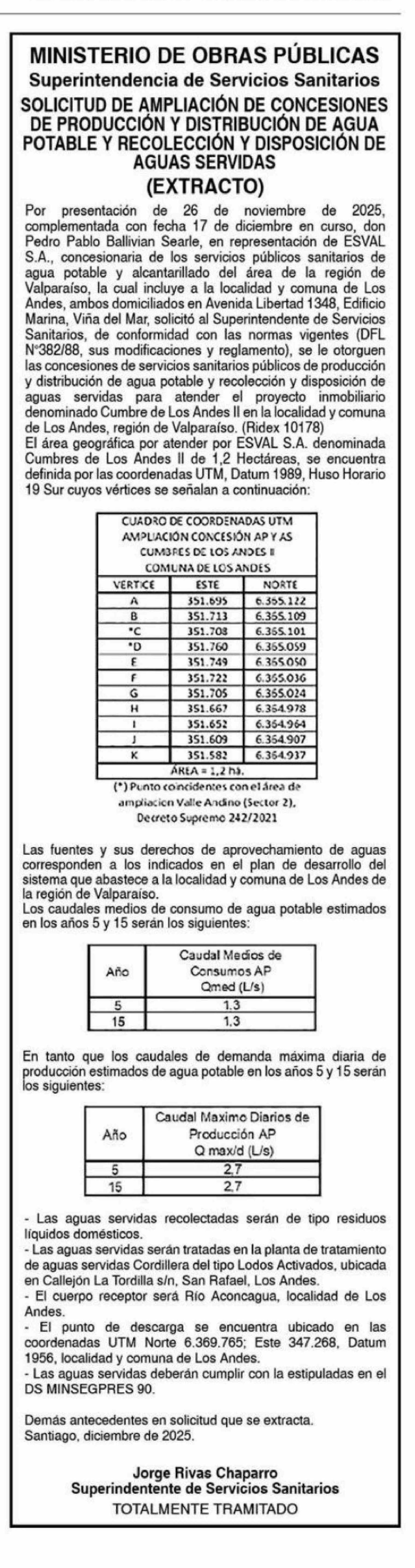 Extractos: MINISTERIO DE OBRAS PÚBLICAS 02-02-2026 El Mercurio de Valparaíso |