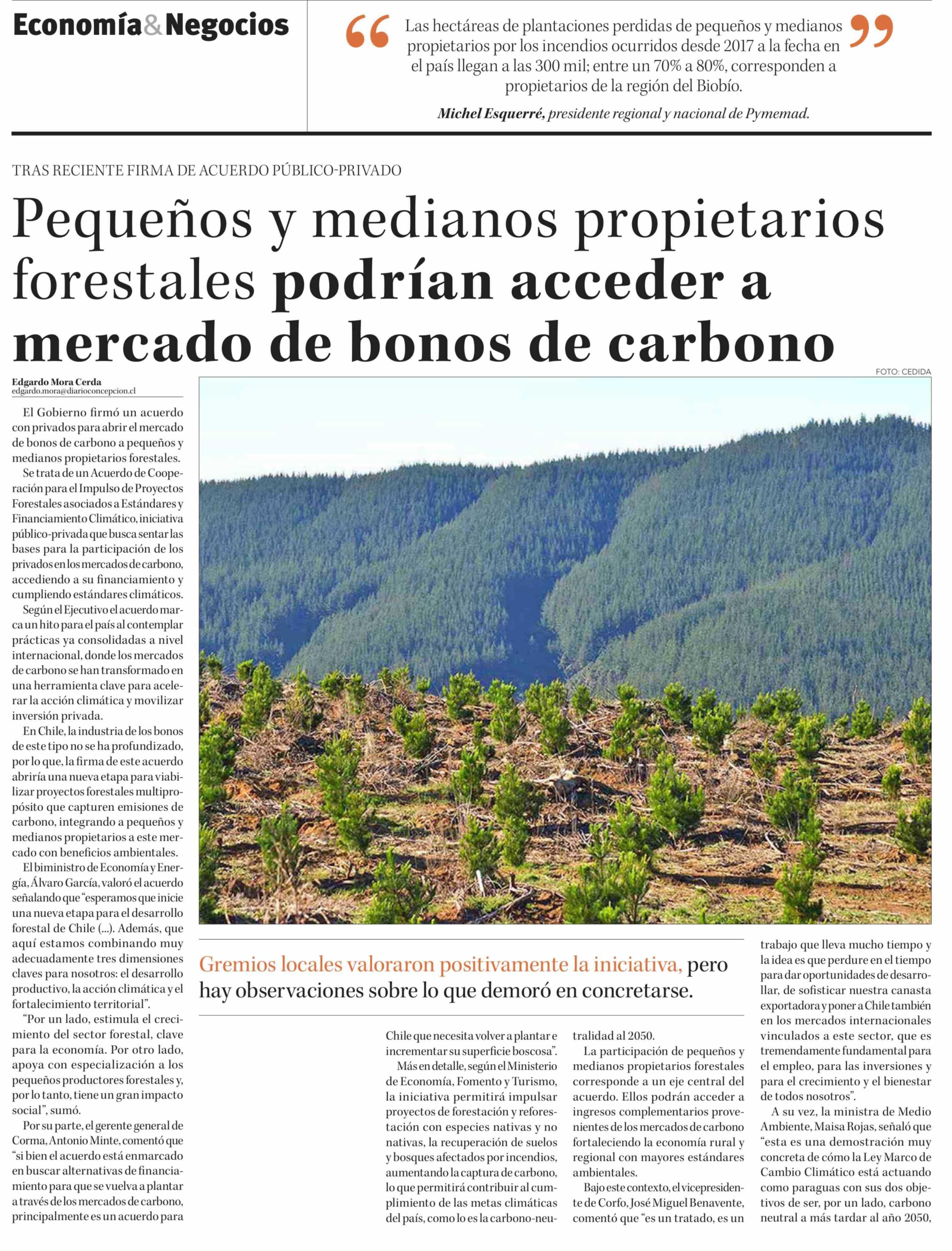 Título: Pequeños y medianos propietarios forestales podrían acceder a mercado de bonos de carbono