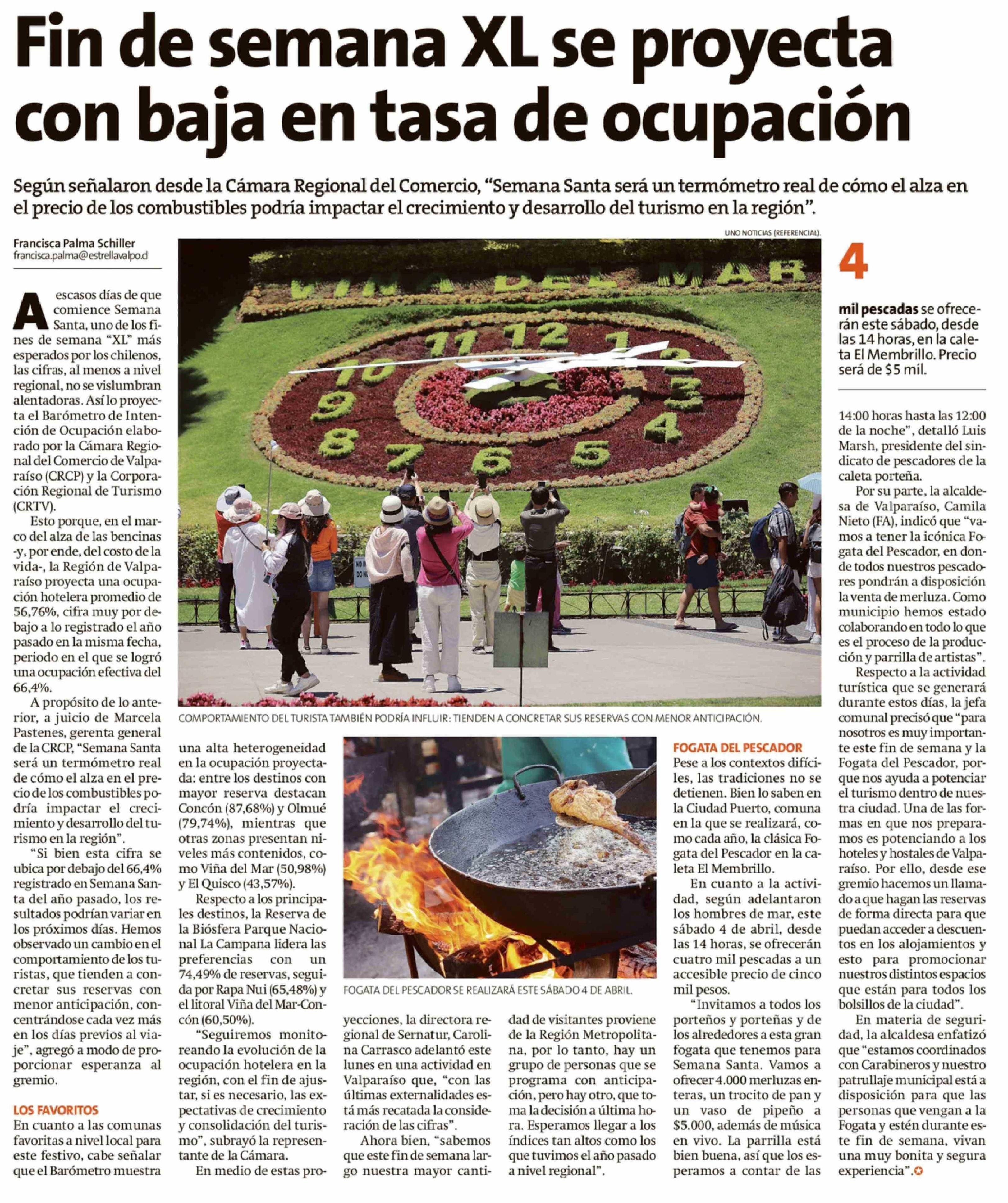 Fin de semana XL se proyecta con baja en tasa de ocupación 31-03-2026 La Estrella de Valparaíso |