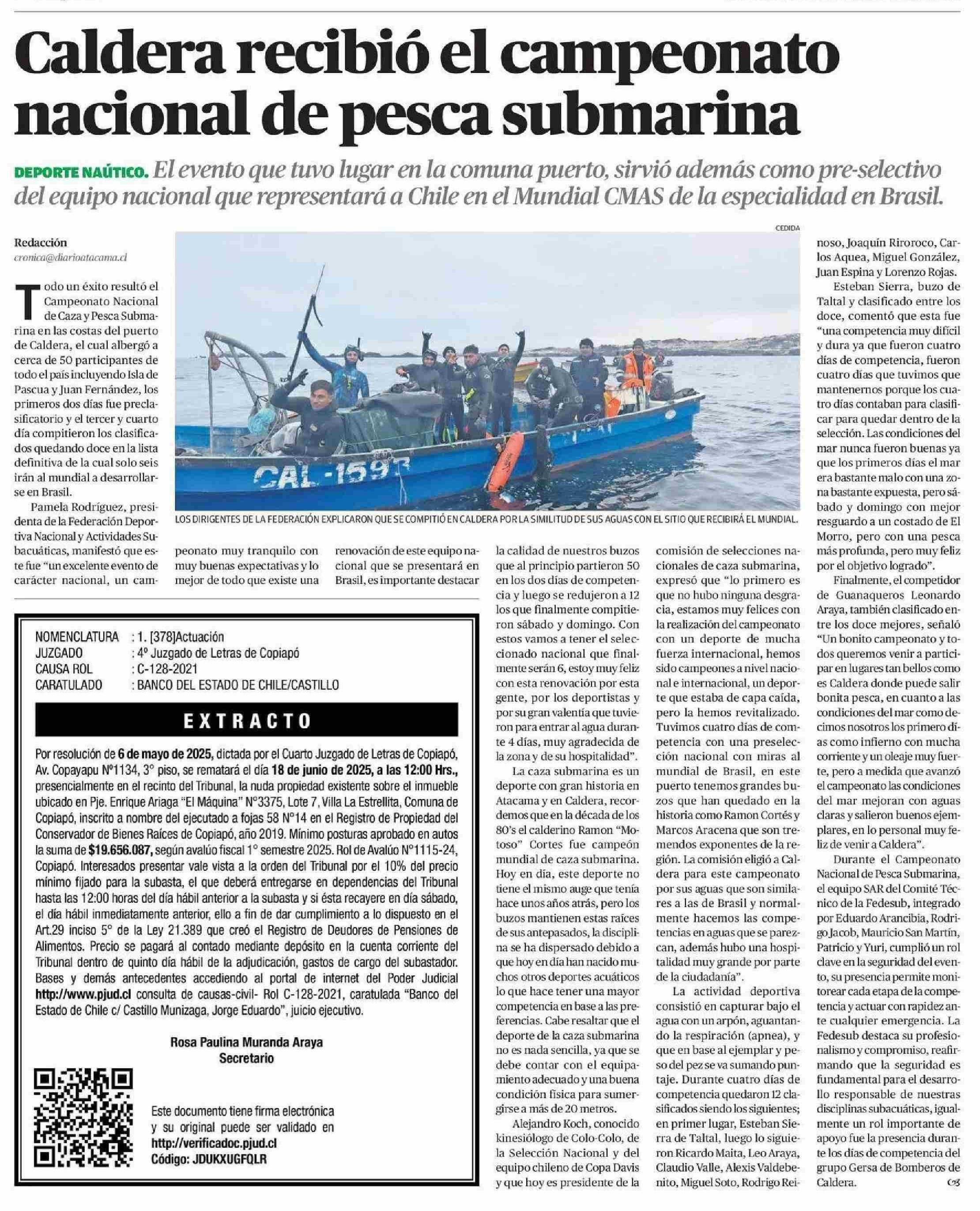 Caldera recibió el campeonato nacional de pesca submarina 27-05-2025 El Diario de Atacama |