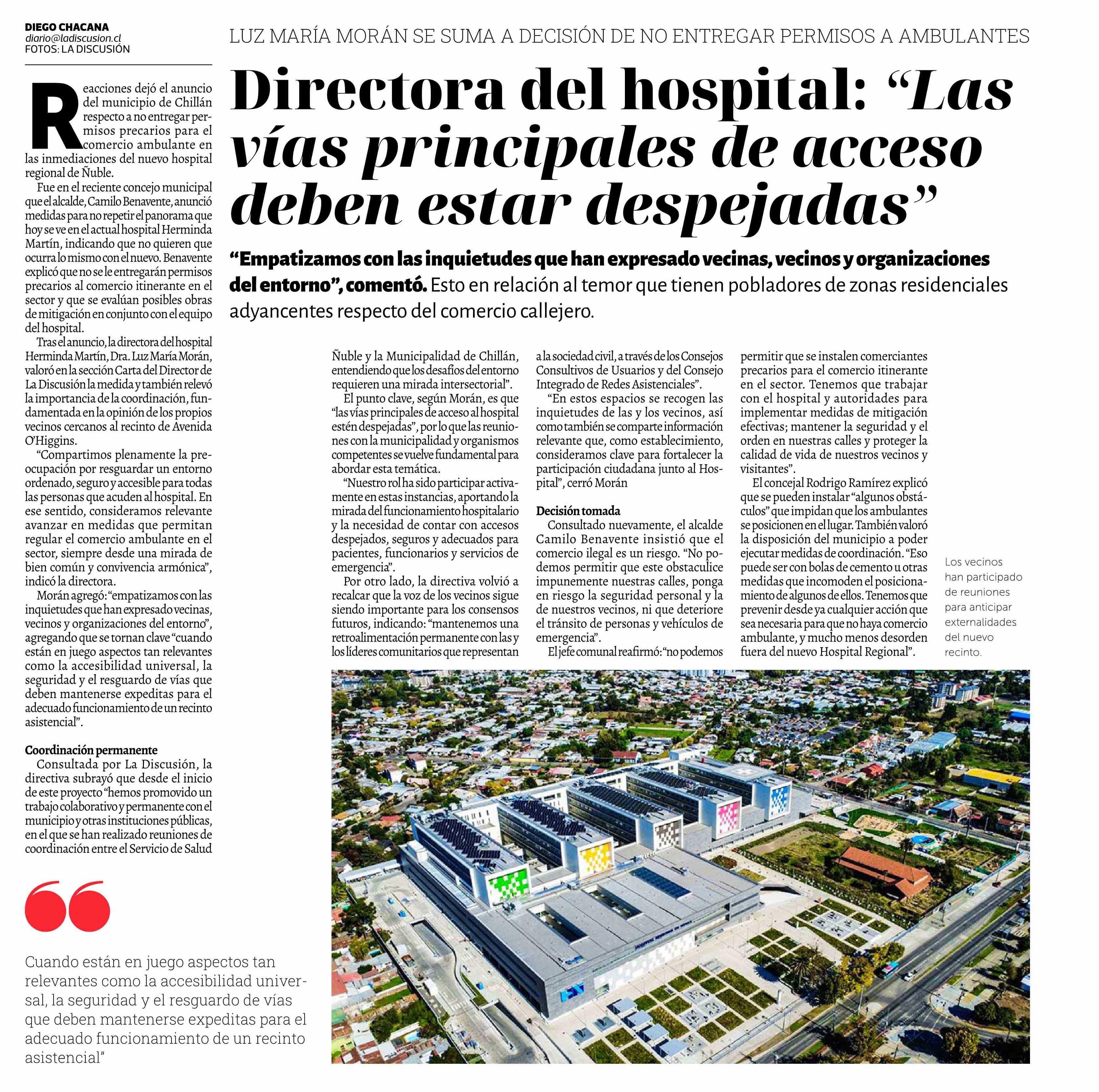 Directora del hospital: "Las vías principales de acceso deben estar despejadas" 11-04-2026 La Discusión |