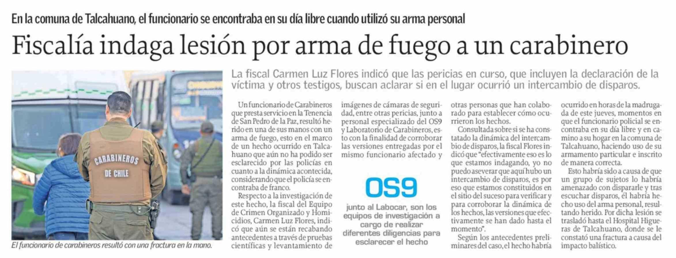 Título: Fiscalía indaga lesión por arma de fuego a un carabinero